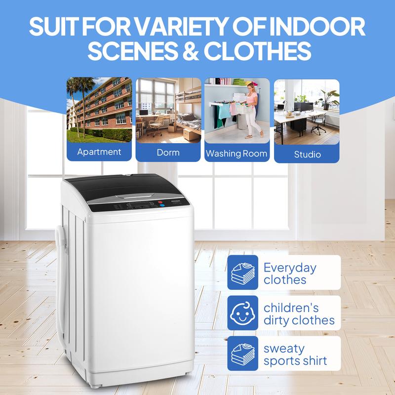 5.Stainless Steel Wash Tub with Top Loading Transparent Quiet Close Lid. Our 2.3cu.ft. portable laundry machine features a durable, rust and corrosion-resistant stainless steel wash tub with top loading transparent quiet-close lid to view contents.