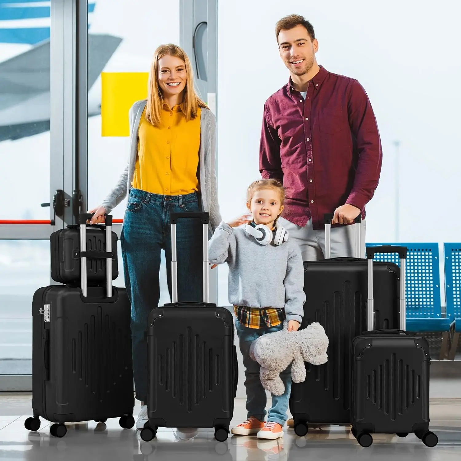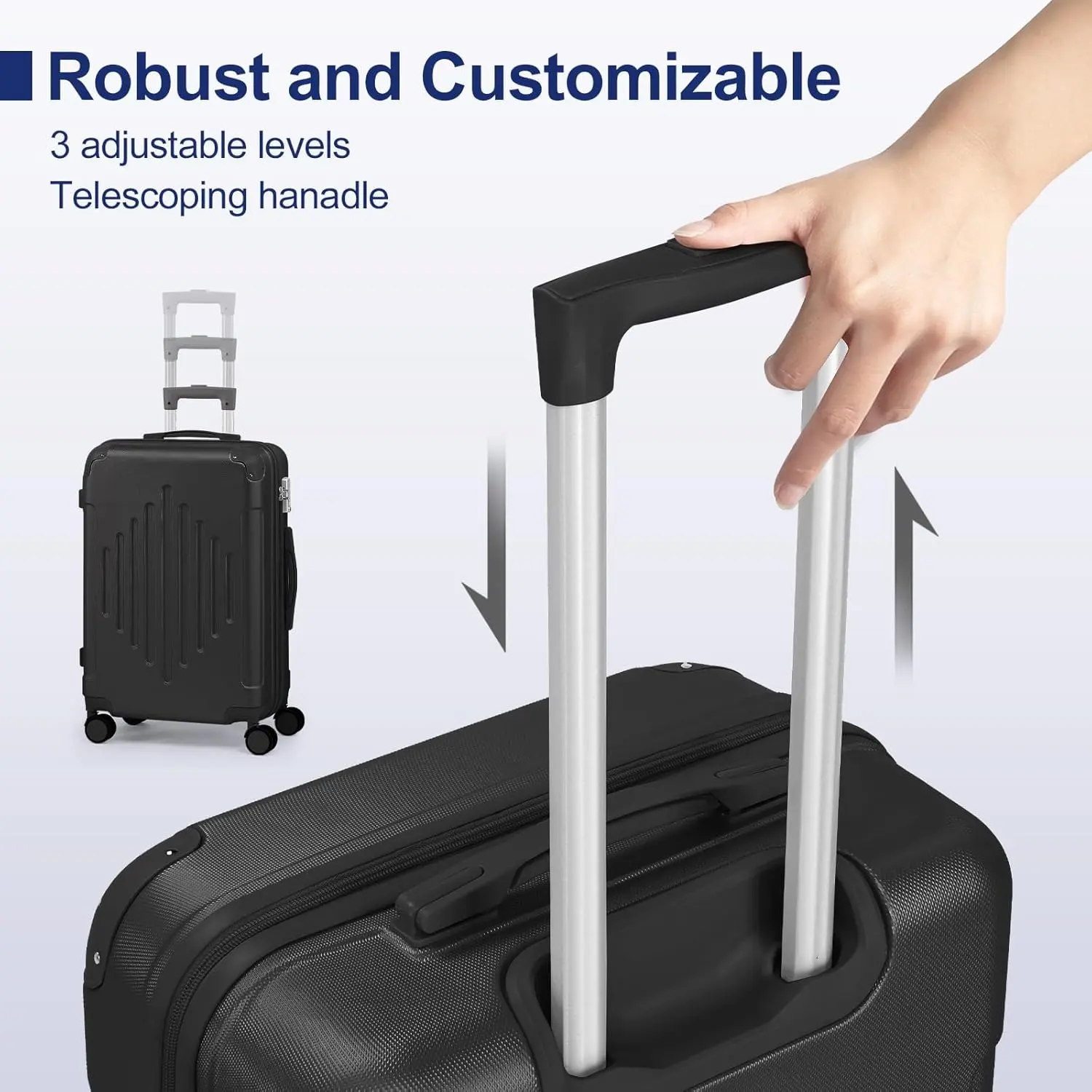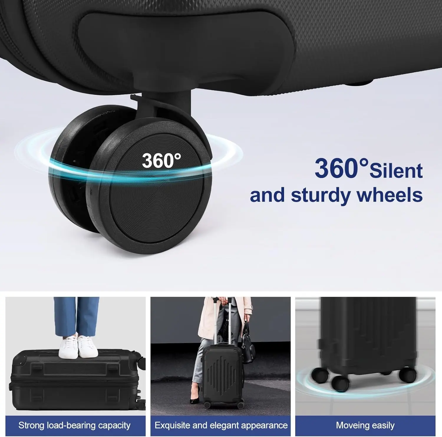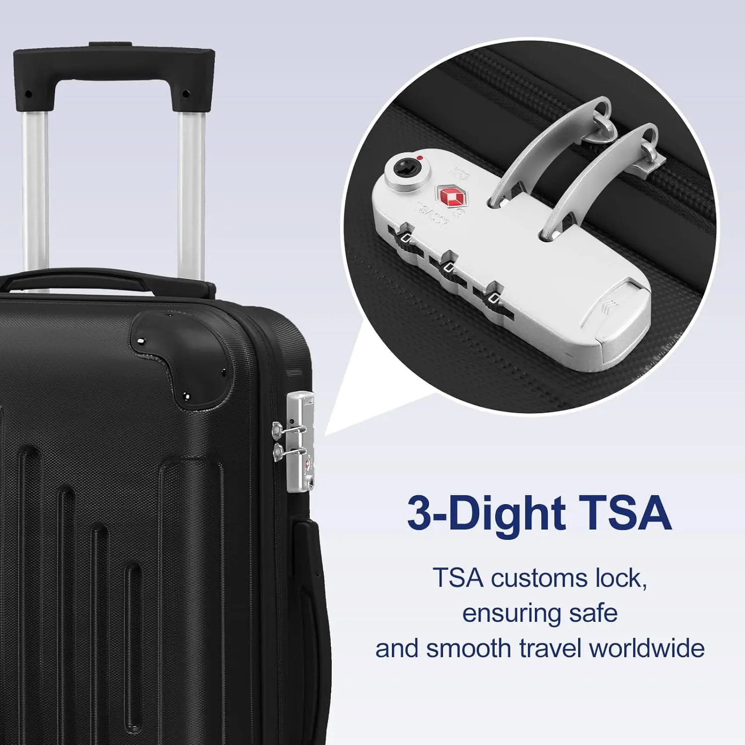 ·【Durable Materials】Crafted from sturdy ABS material with 2 molded corners and a black full liner, our luggage set is resistant to scratches, pressure, and water. It's also lightweight and easy to clean, making it a practical choice for all your travel needs