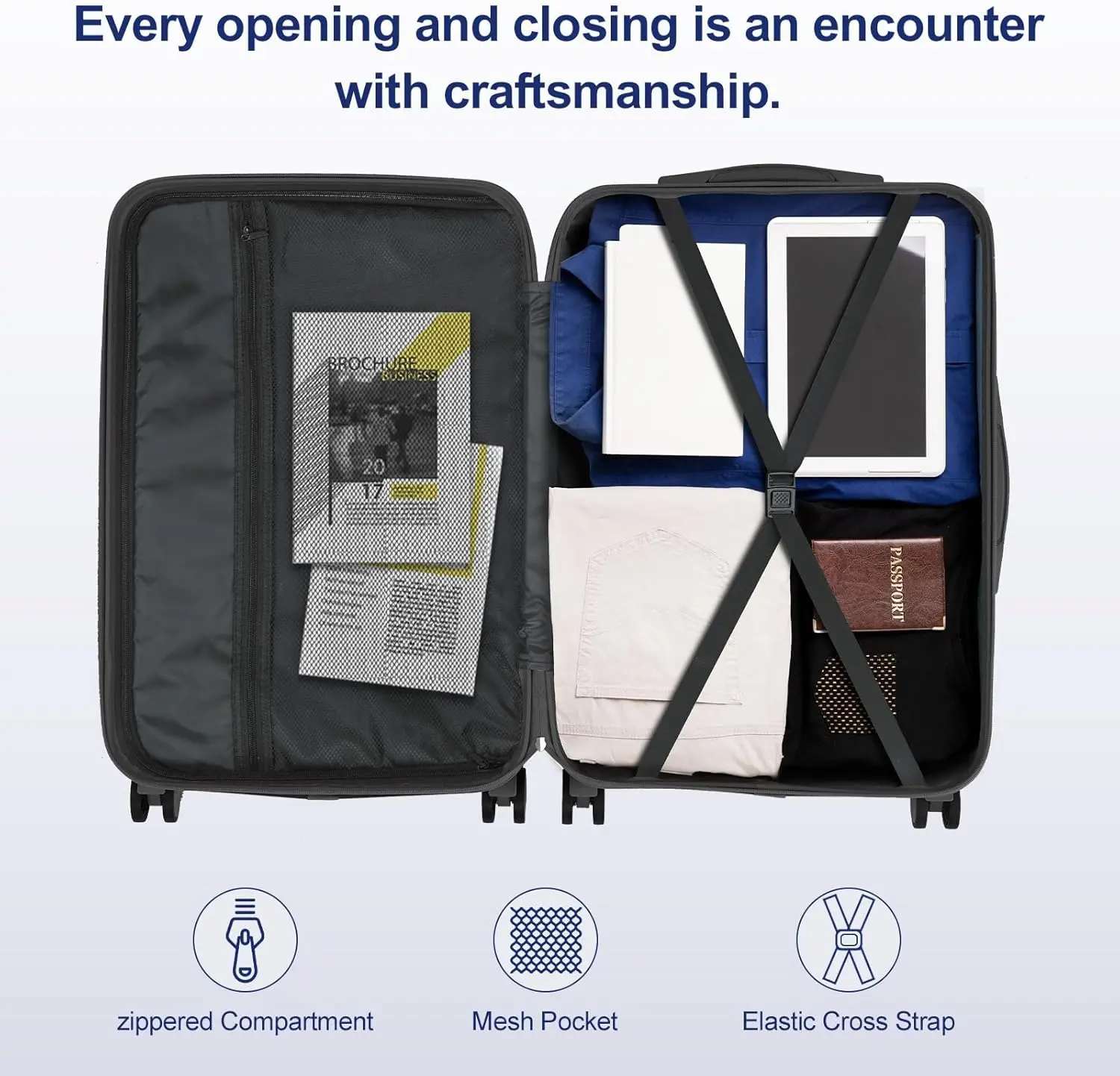 ·【Organized & Spacious】With two large compartments, a mesh zippered compartment, and cross straps, our luggage set provides ample storage and organization for your clothes, shoes, and other essentials