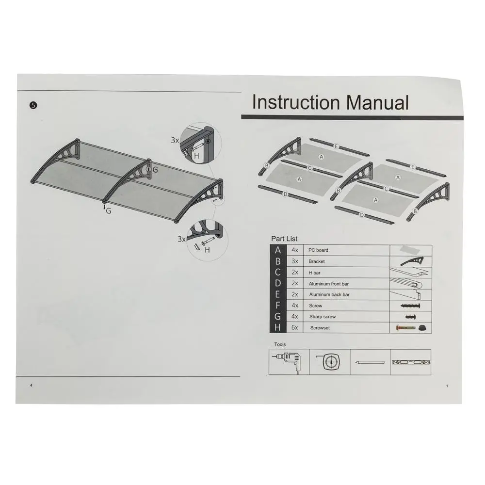 Ubesgoo Anti-UV Awning, Door Awning, UPS 50+Polycarbonate Cover Front Door Outdoor Patio Awning Anti-UV Rain Snow Sun Protection Hollow Core Panel Window, High Quality ABS and Polycarbonate Material