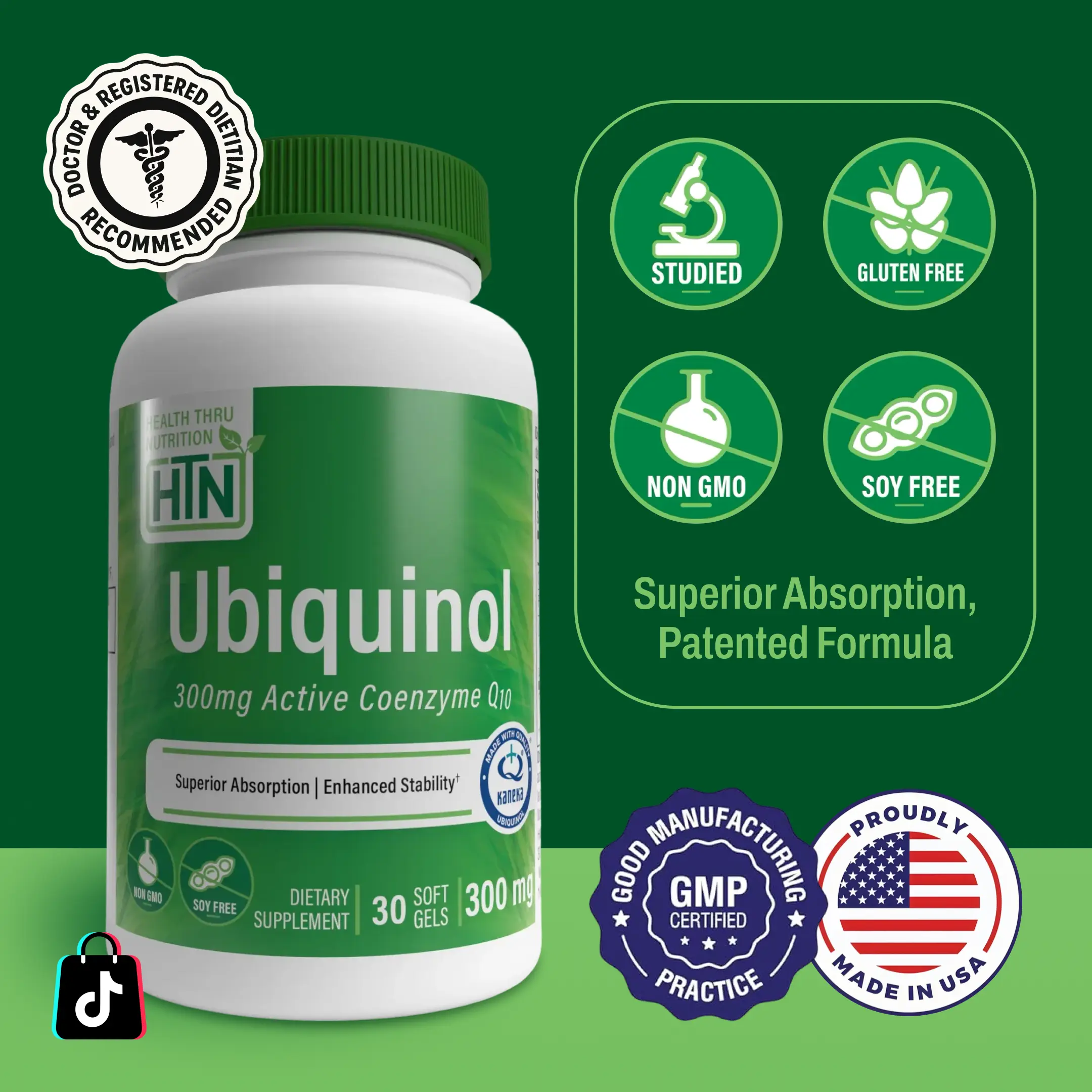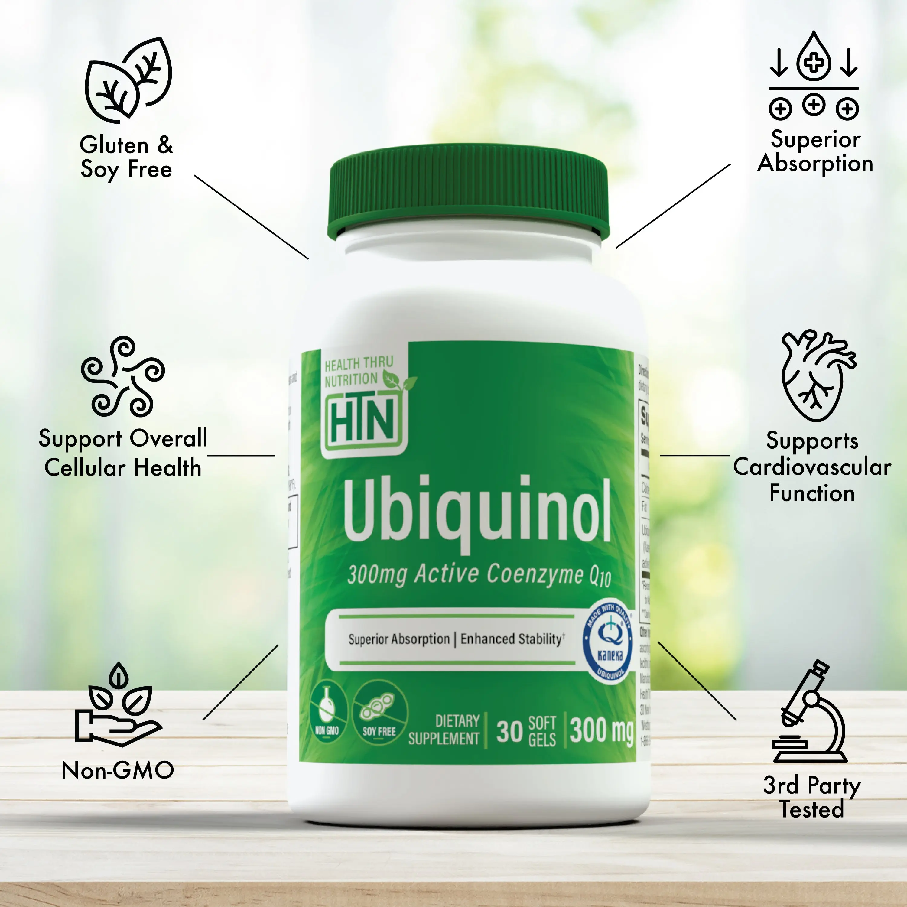 Health Thru Nutrition’s Ubiquinol is formulated with Kaneka® Ubiquinol, a high-quality, stabilized CoQ10 ingredient. This Non-GMO, gluten-free, and soy-free supplement is manufactured in the USA under strict cGMP standards to ensure quality and consistency.