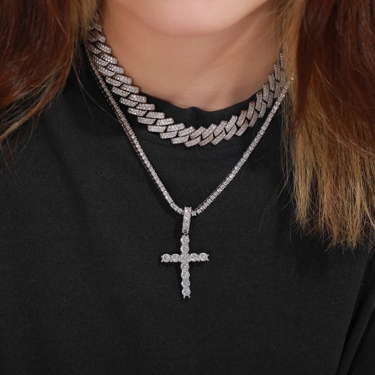 【P66 livestream】Cross Pendant  S925 Sterling Silver Cross Inlaid Synthetic Moissanite Cross Pendant Necklace Suitable for Men and Women Hip Hop Exquisite Jewelry Gift