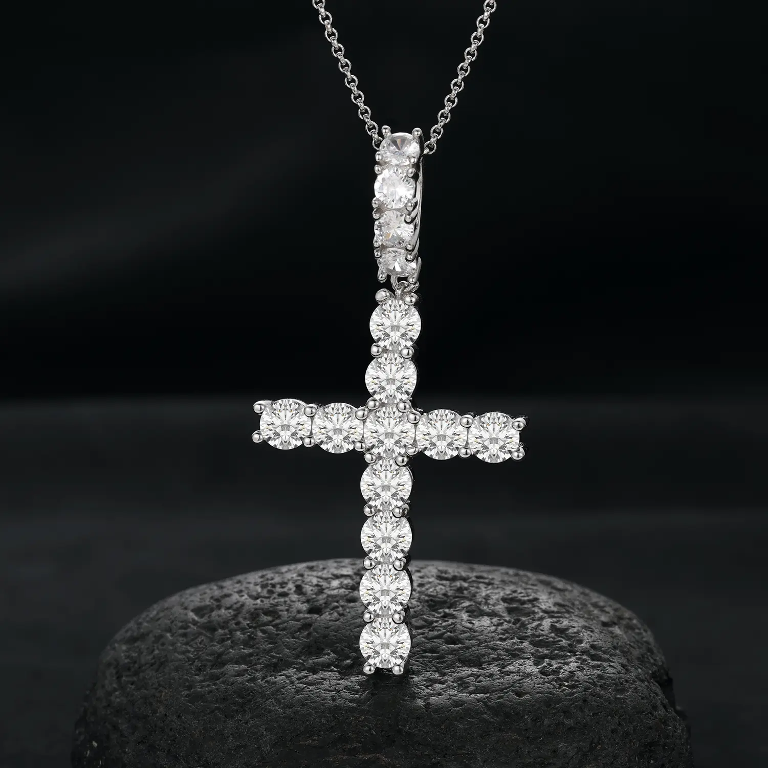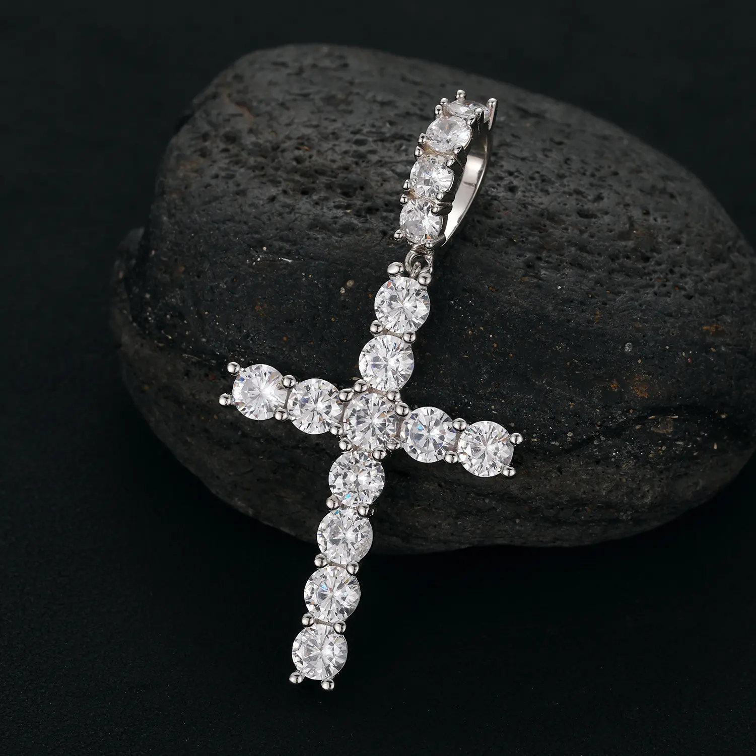5. 【P66 livestream】Cross Pendant S925 Sterling Silver Cross Inlaid Synthetic Moissanite Cross Pendant Necklace Suitable for Men and Women Hip Hop Exquisite Jewelry Gift