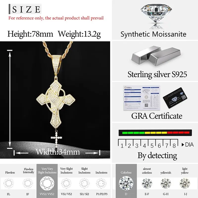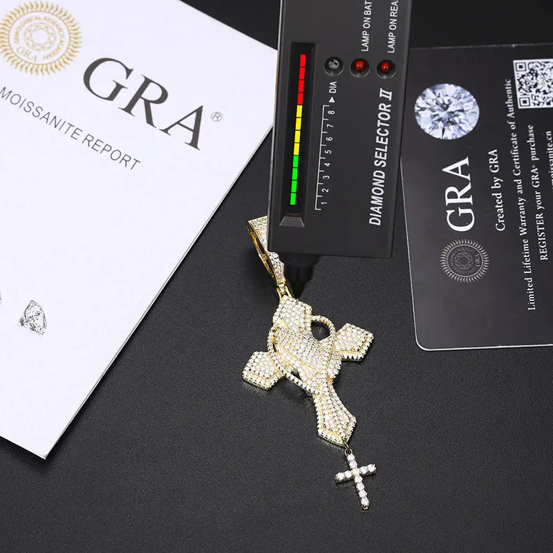 I’m amazed at the quality, came with a free chain, free ear rings that are also moissanite! The pendant shines so hard that you can even see it glisten in the dark. Awesome stuff, definitely check them out! All this stuff passes a diamond tester.