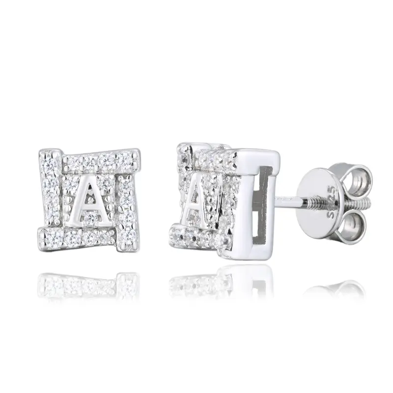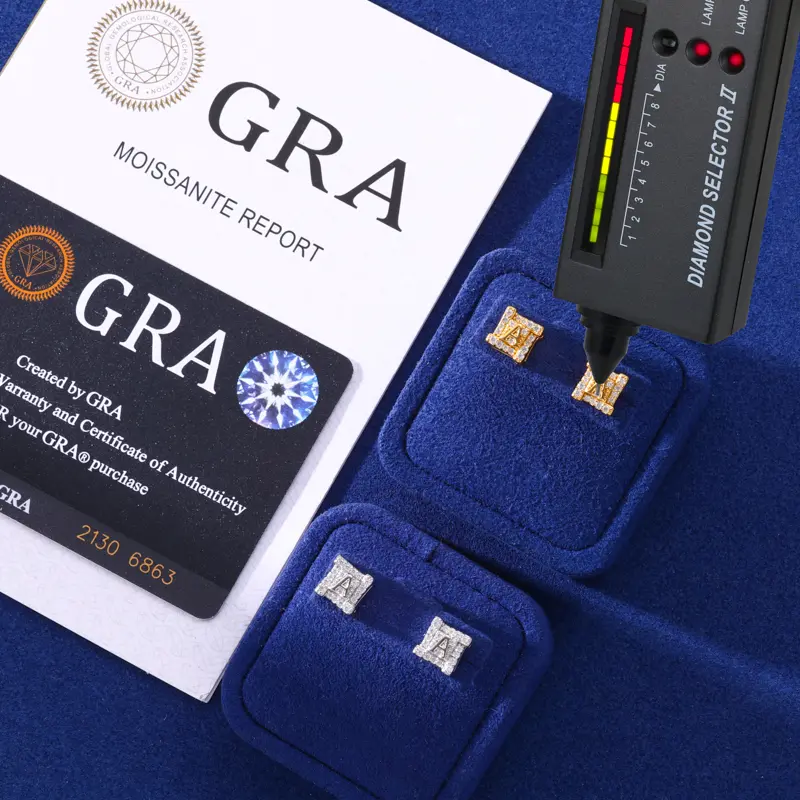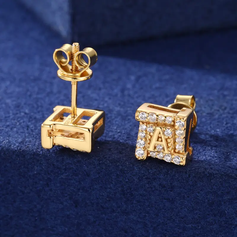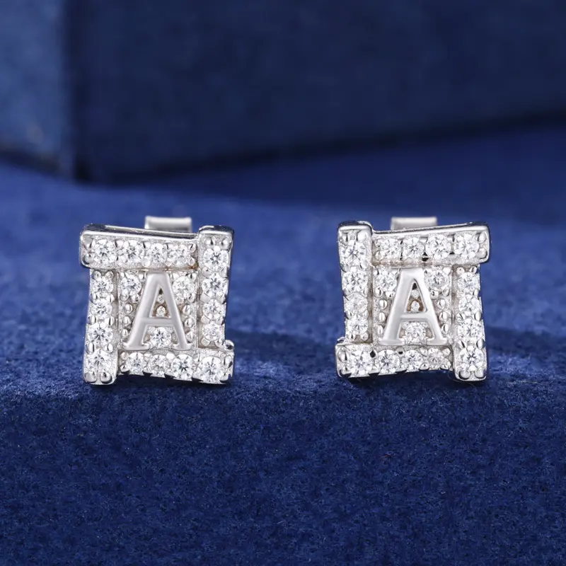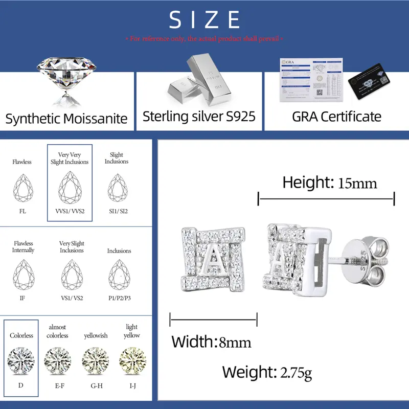 5. 【#E592】Square letter Ice Out earrings UCCIYO Synthetic Moissanite Earrings For Women 925 Sterling Silver Stud Earring Men Hip Hop Jewelry Couple Gift