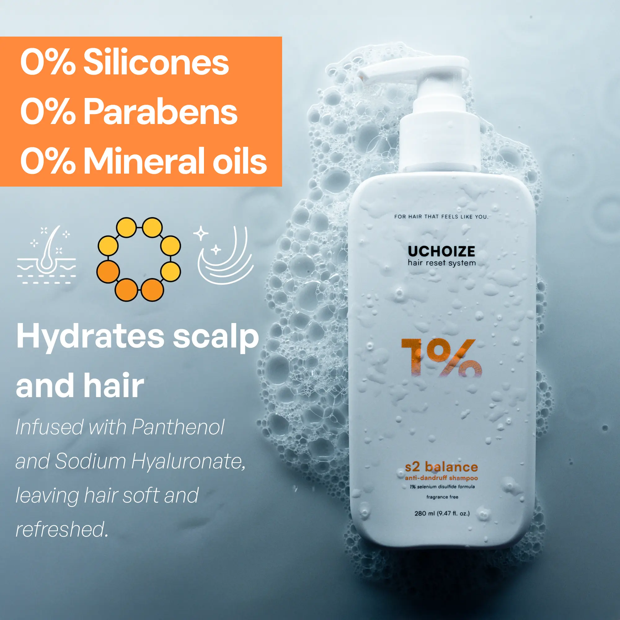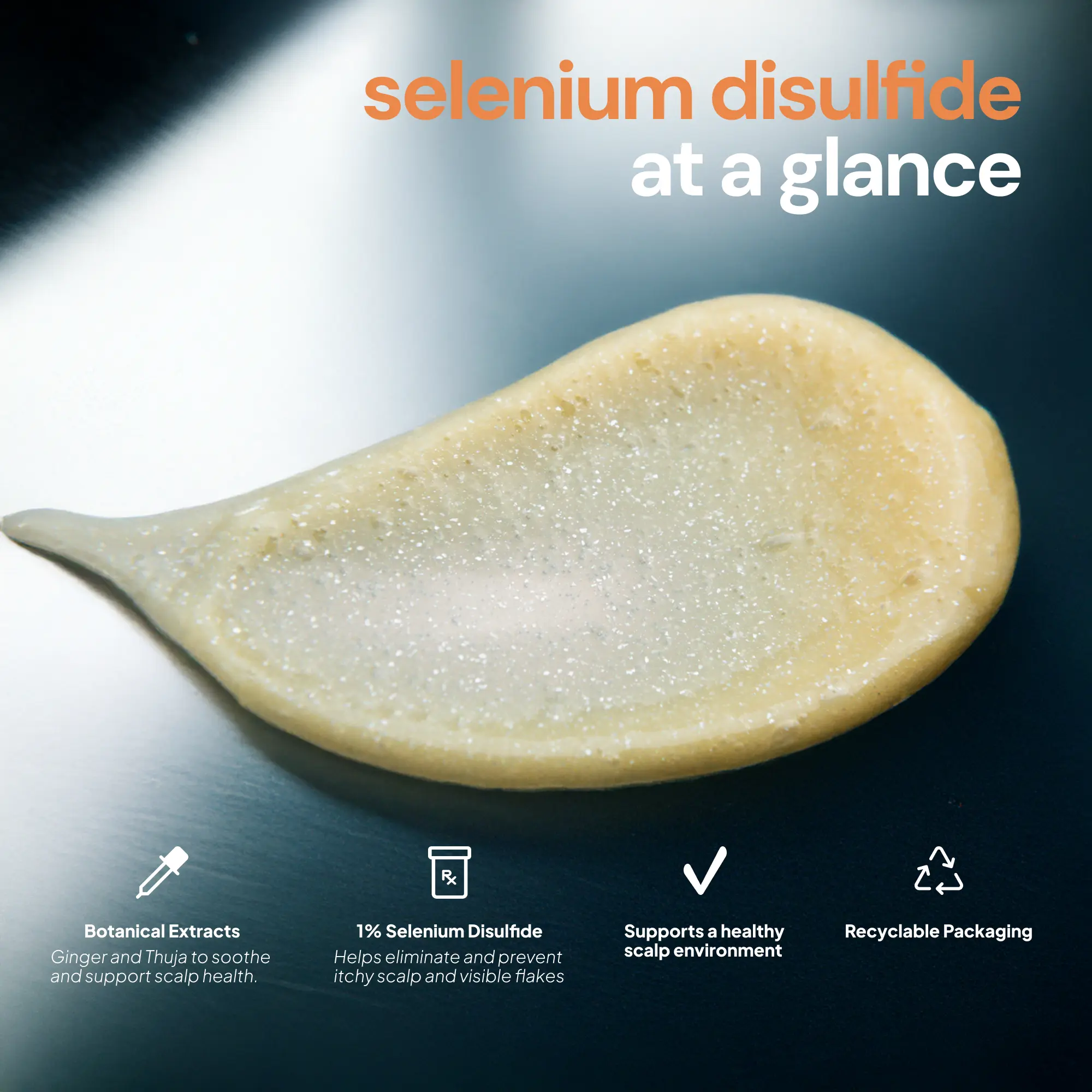 Formulated with 1% Selenium Disulfide, an ingredient known to help control dandruff symptoms, this shampoo supports relief from scalp irritation and flaking. Plant-derived surfactants provide a gentle cleanse, while Panthenol and Sodium Hyaluronate help hydrate strands and scalp. Polyquaternium-10 works to reduce frizz and smooth hair texture — all without sulfates, parabens, dyes, or silicones.
