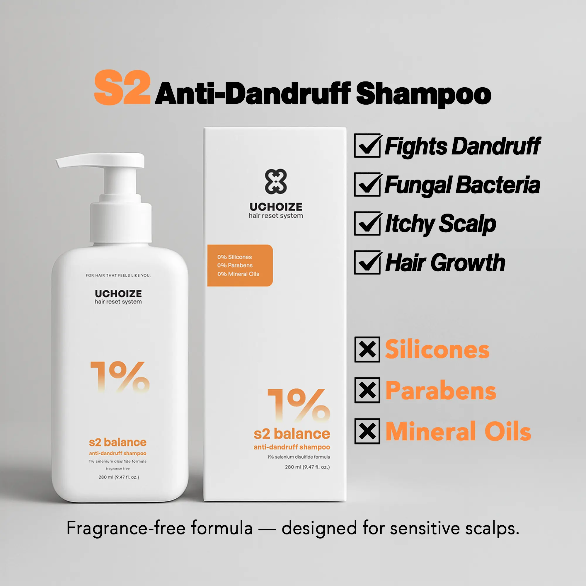 S2 Balance helps purify, soothe, strengthen, rebalance oil, and visibly reduce flakes. Use every 3–4 days for up to 8 weeks or as directed by a healthcare provider. Designed to support long-term scalp health without the harsh side effects of traditional dandruff shampoos.