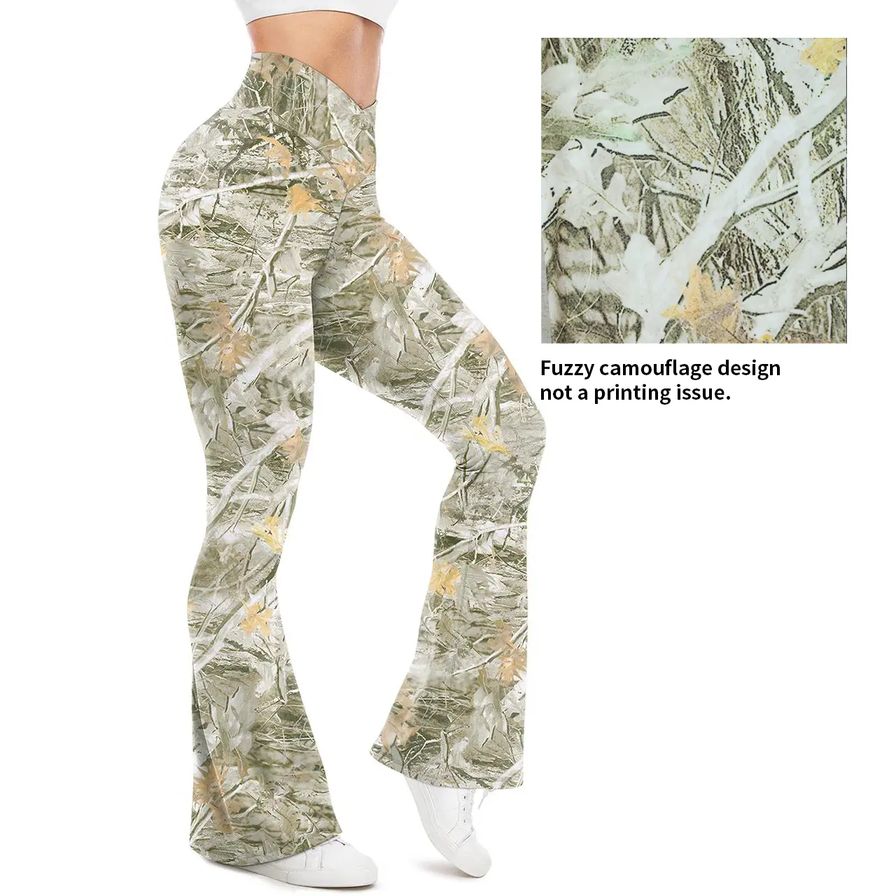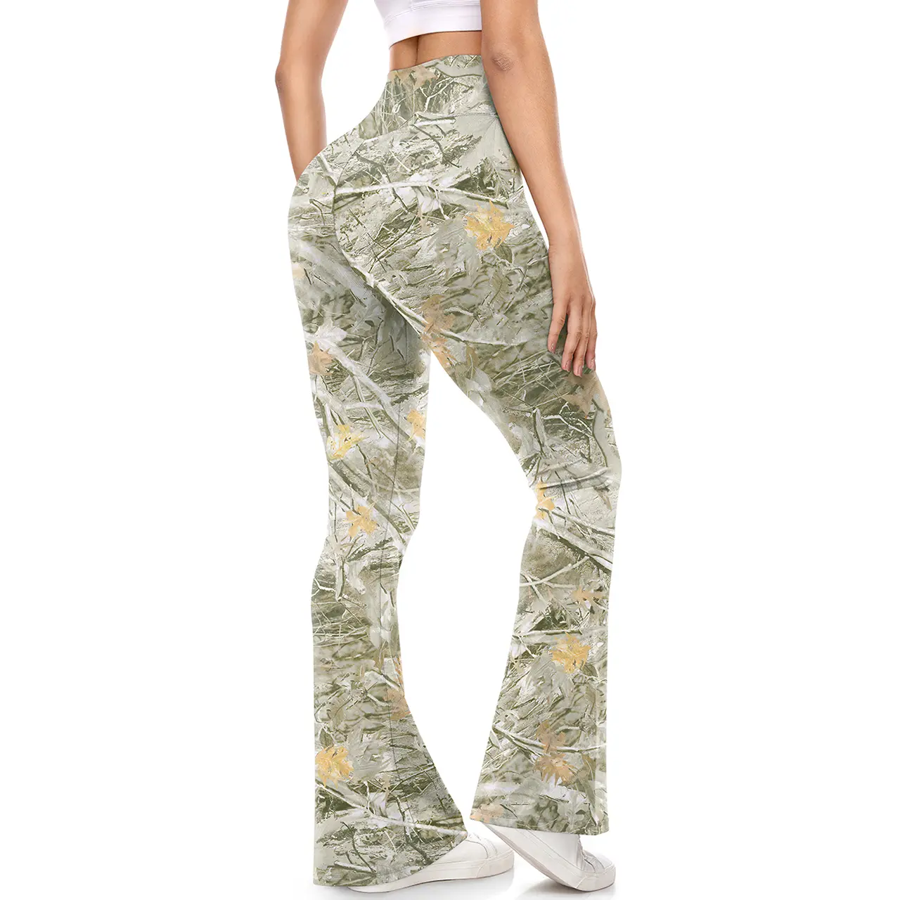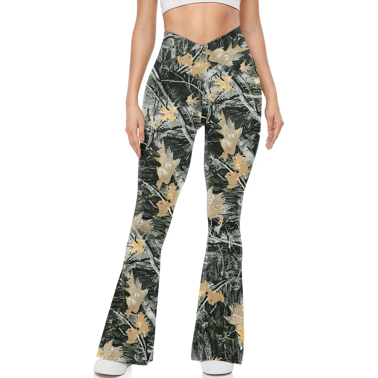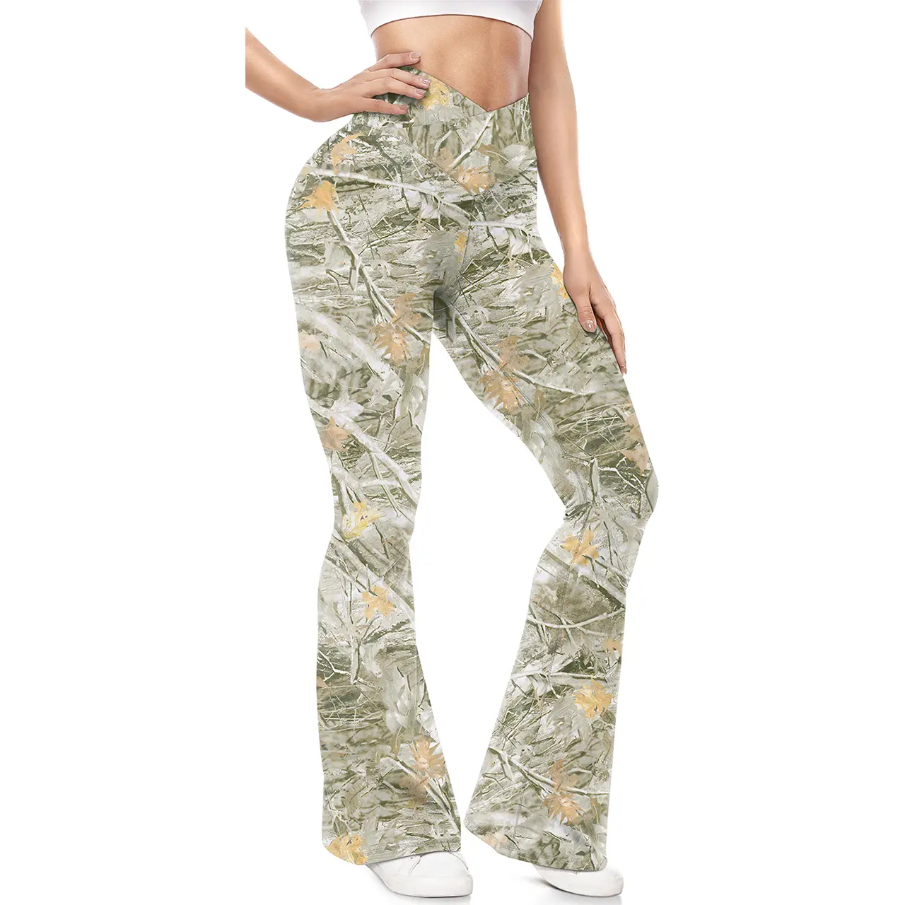 Flattering leggings with V crossover high waistband and flowy flare give an elegant look. Perfect for yoga, pilates, and beyond, providing all-day comfort.