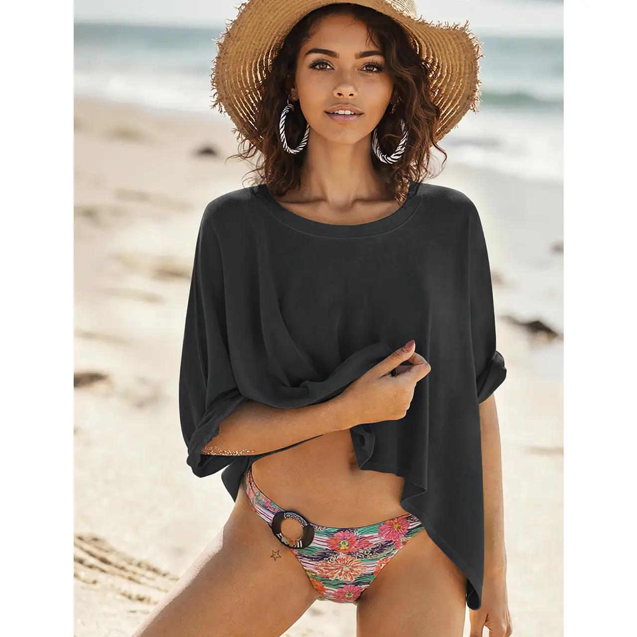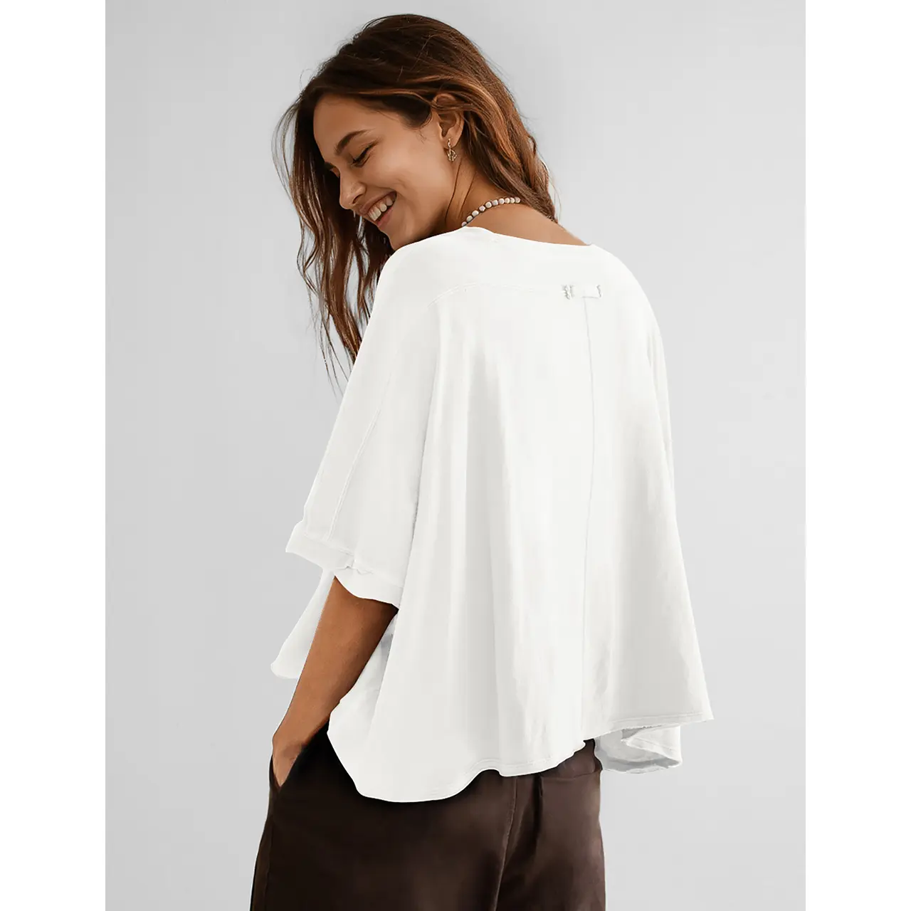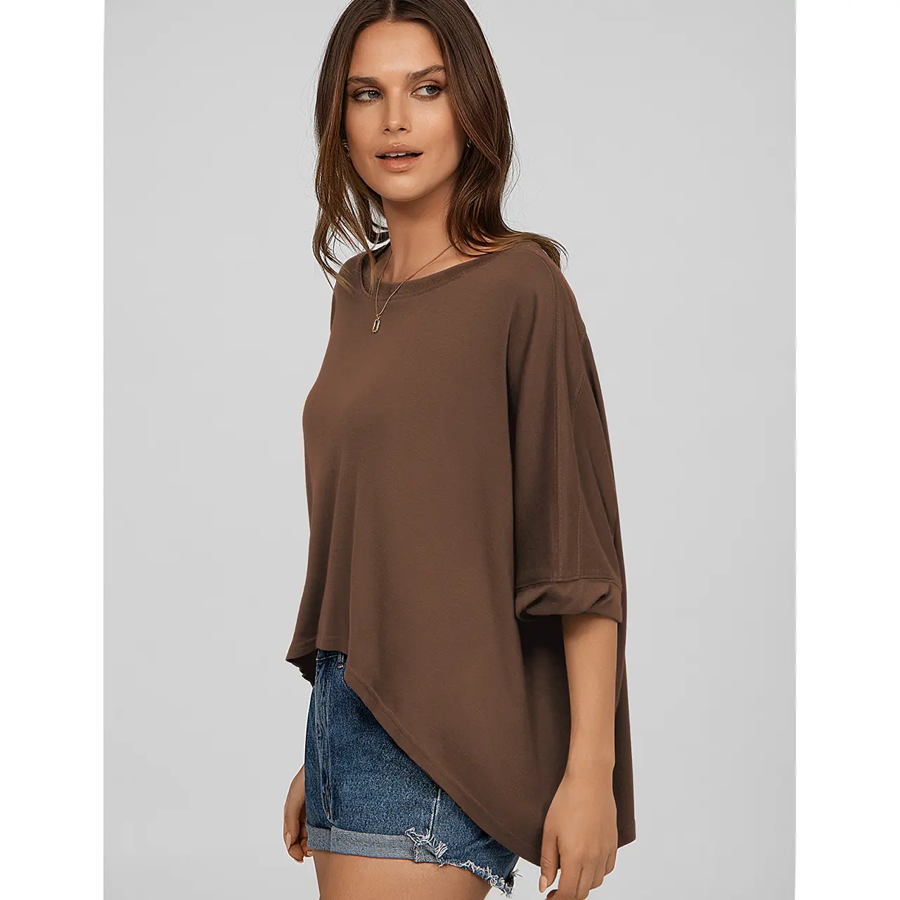 This simple 4/3 sleeve t-shirt blouse can be easily paired with various bottom options including jeans, shorts, leggings, pants, or skirts with sneakers and casual shoes for a concise and fashionable look. It can also be layered under a jacket in winter for added versatility