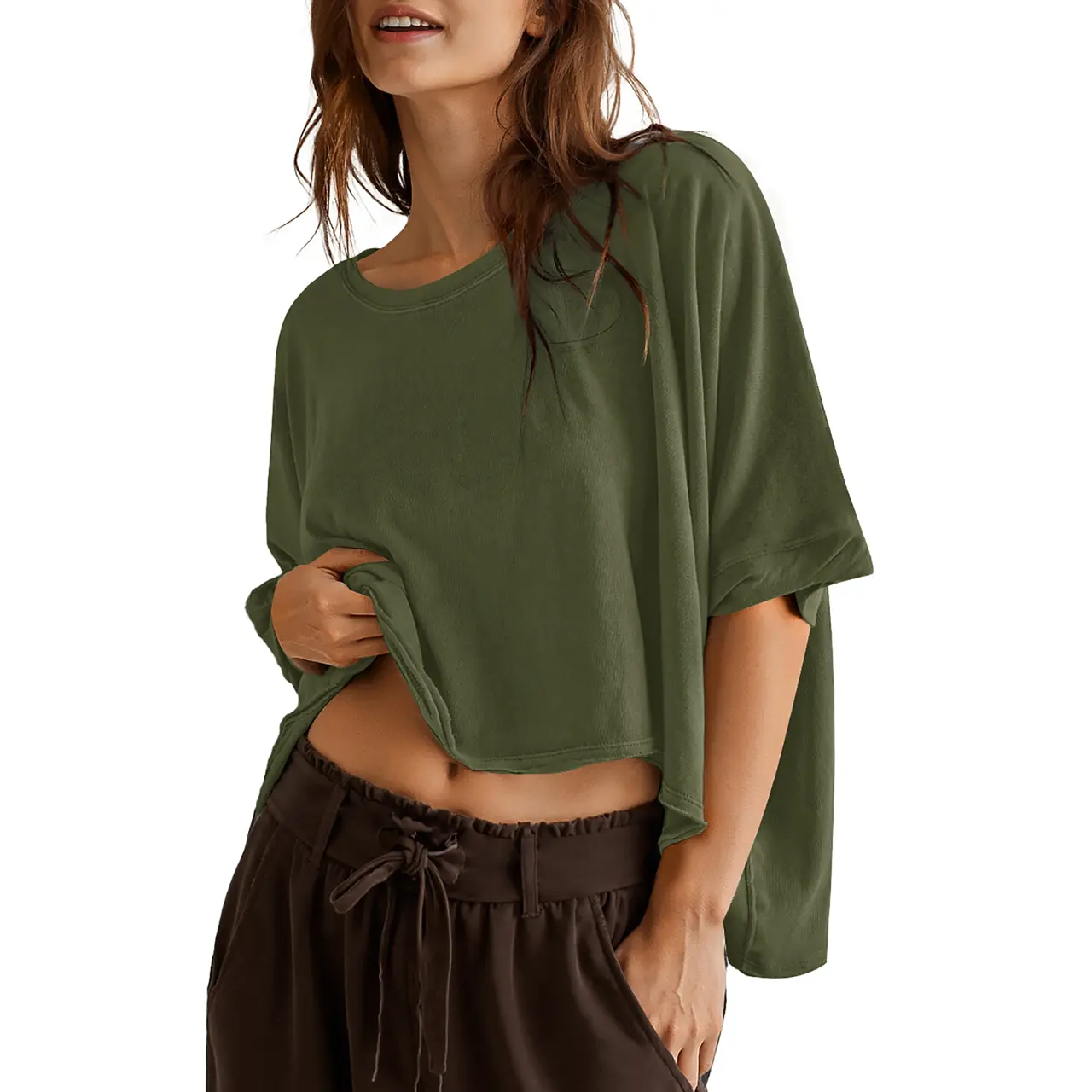Oversized tshirt is soft, comfy, breathable, and skin-friendly, whether for work, sports, or other activities, these round neck t-shirts will keep you dry and comfortable all day. The elbow sleeve workout shirt is cozy, lightweight yet comfort, suitable for spring, summer and fall