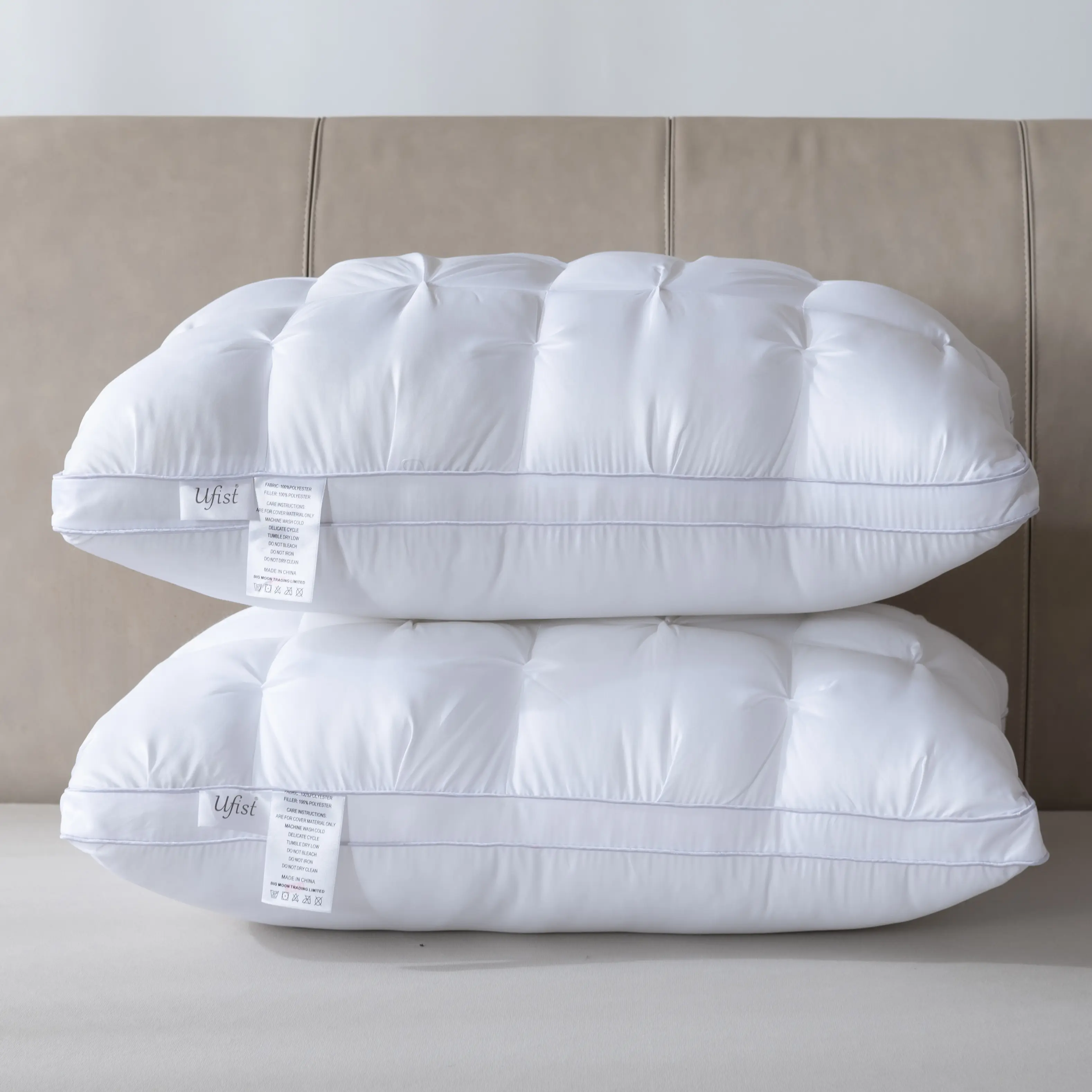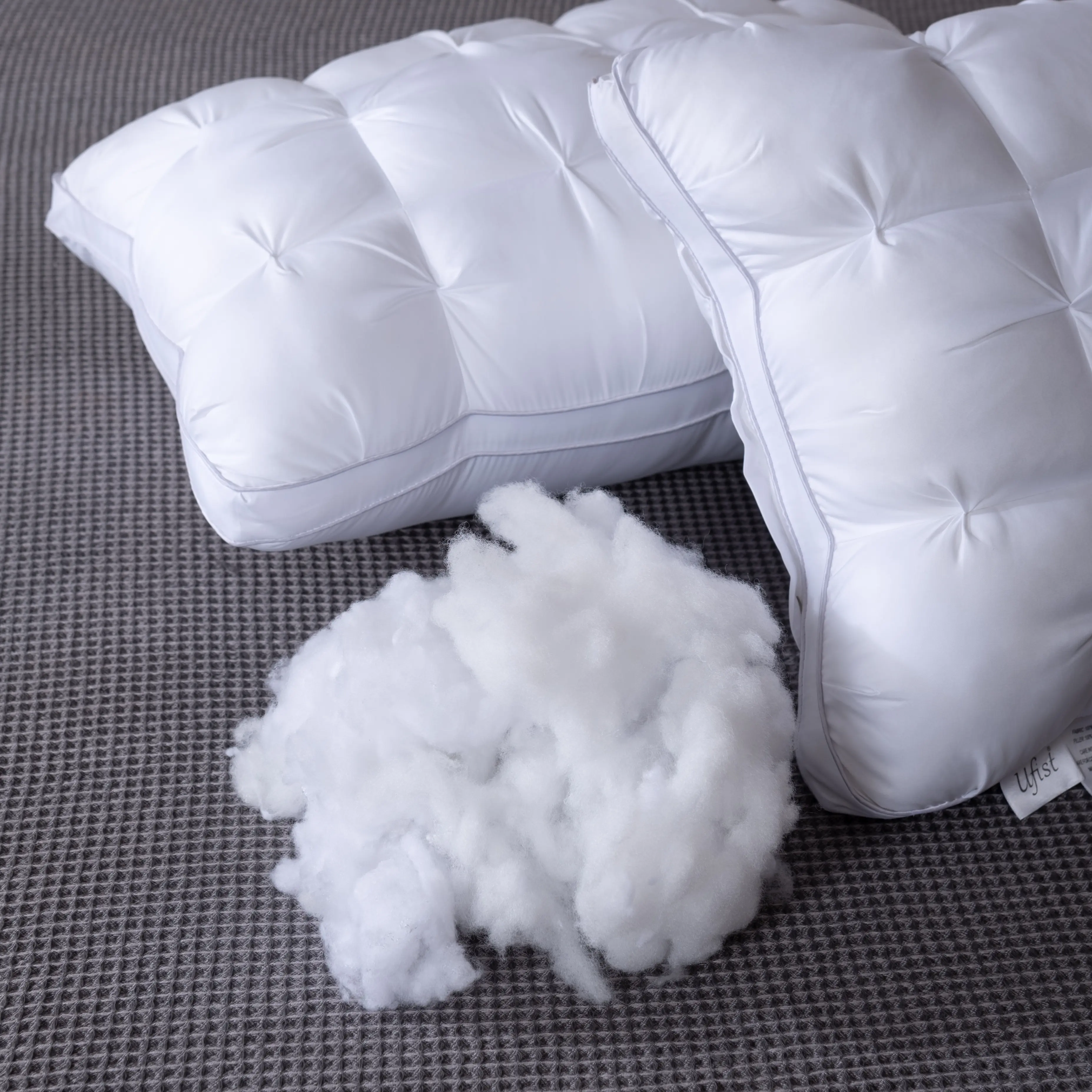 Good pillows for the price on sale. They are fluffy and they don't flatten too much with the weight of my head. Very soft filling.
