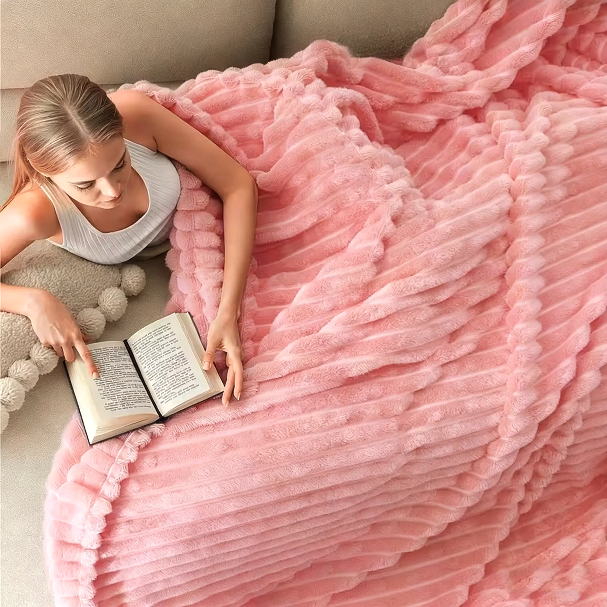 This blanket looks very thick and soft and plush in the picture but mine looks likes the wish version of it. If it wasn't for my cat liking it I would have got a refund. It is big but super thin.it isn't even comfortable.