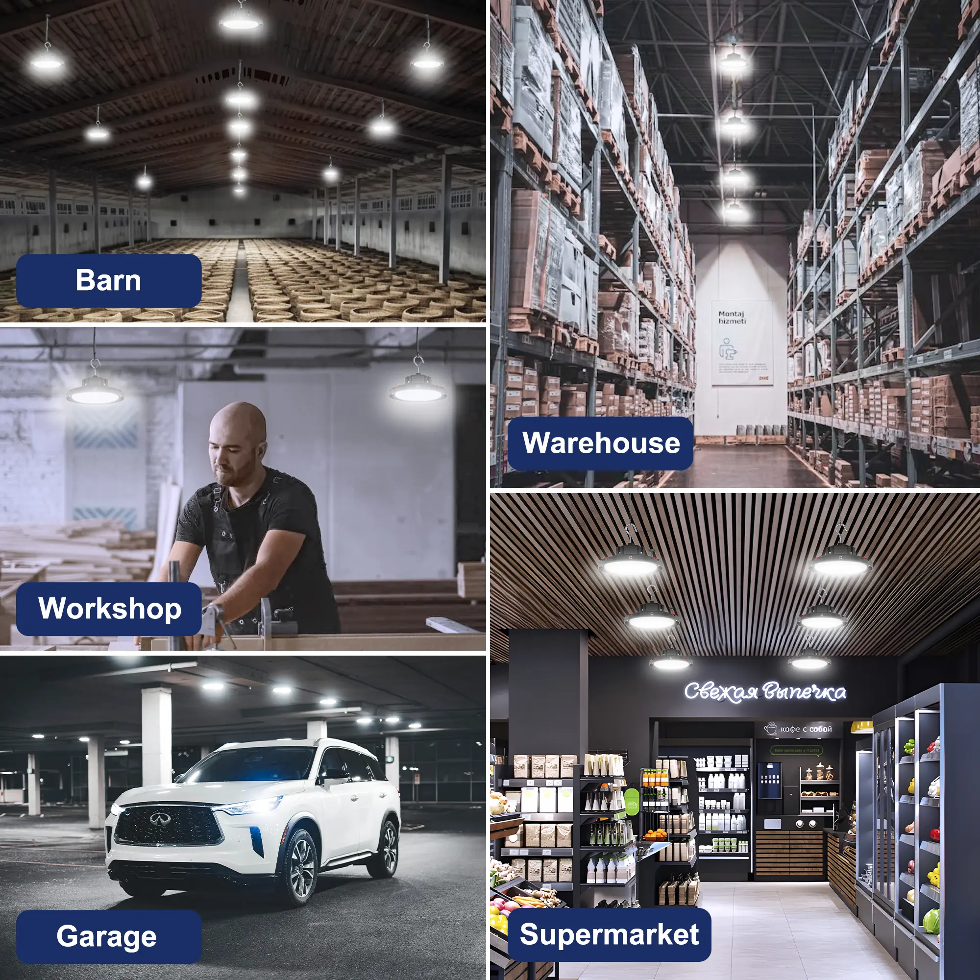 Ideal for various settings like warehouses and factories, these lights focus on providing a safe and effective light source. Their design ensures productivity and safety in diverse settings, making them a reliable choice for large spaces.