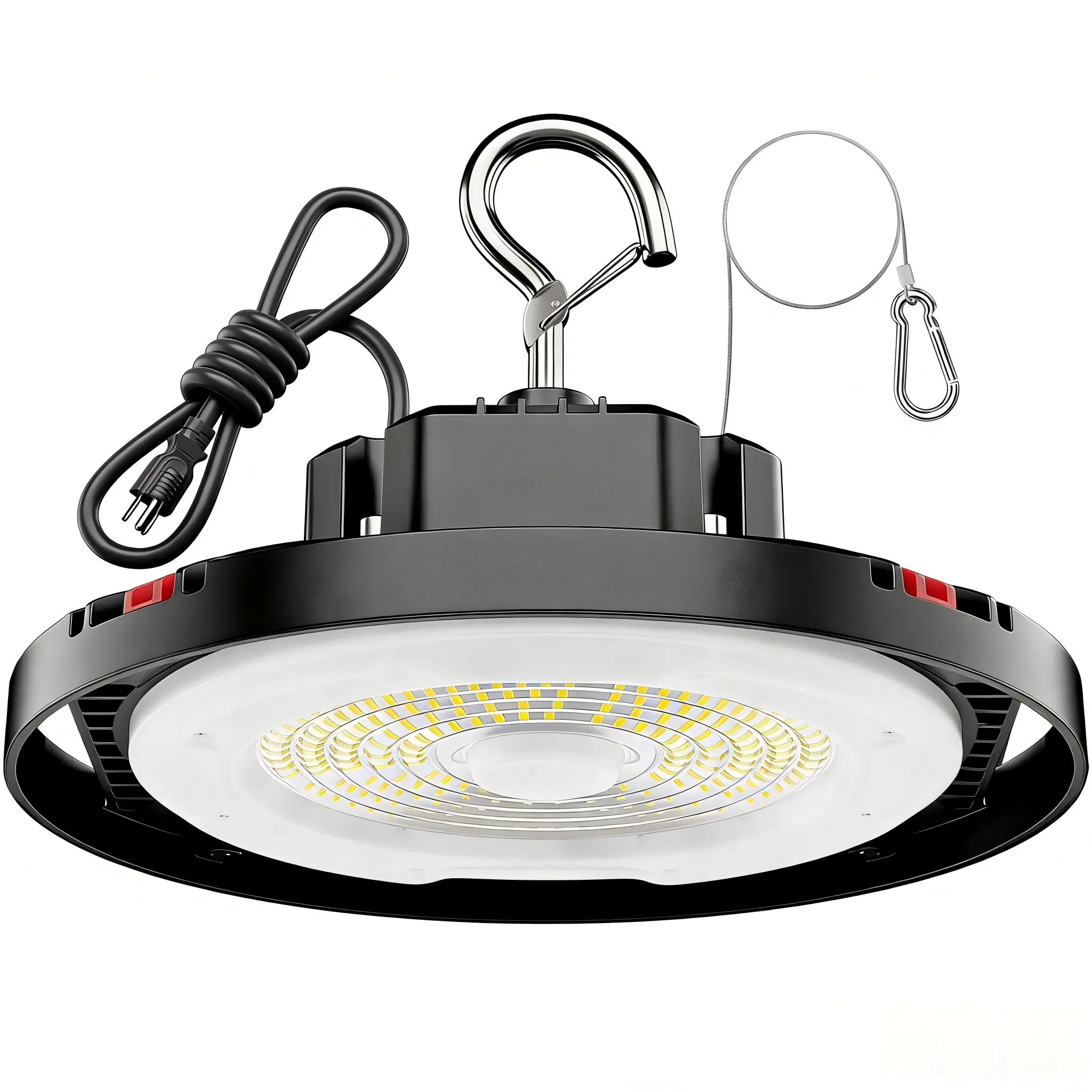 Elevate your workspace with the UFO High Bay Lights! These LED shop lights boast a powerful 24000lm output, ensuring ample illumination for any area. Perfect for warehouses, garages, factories, and barns, they provide a commercial bay lighting solution. Operate on a 120V system, these lights are engineered for commercial environments.