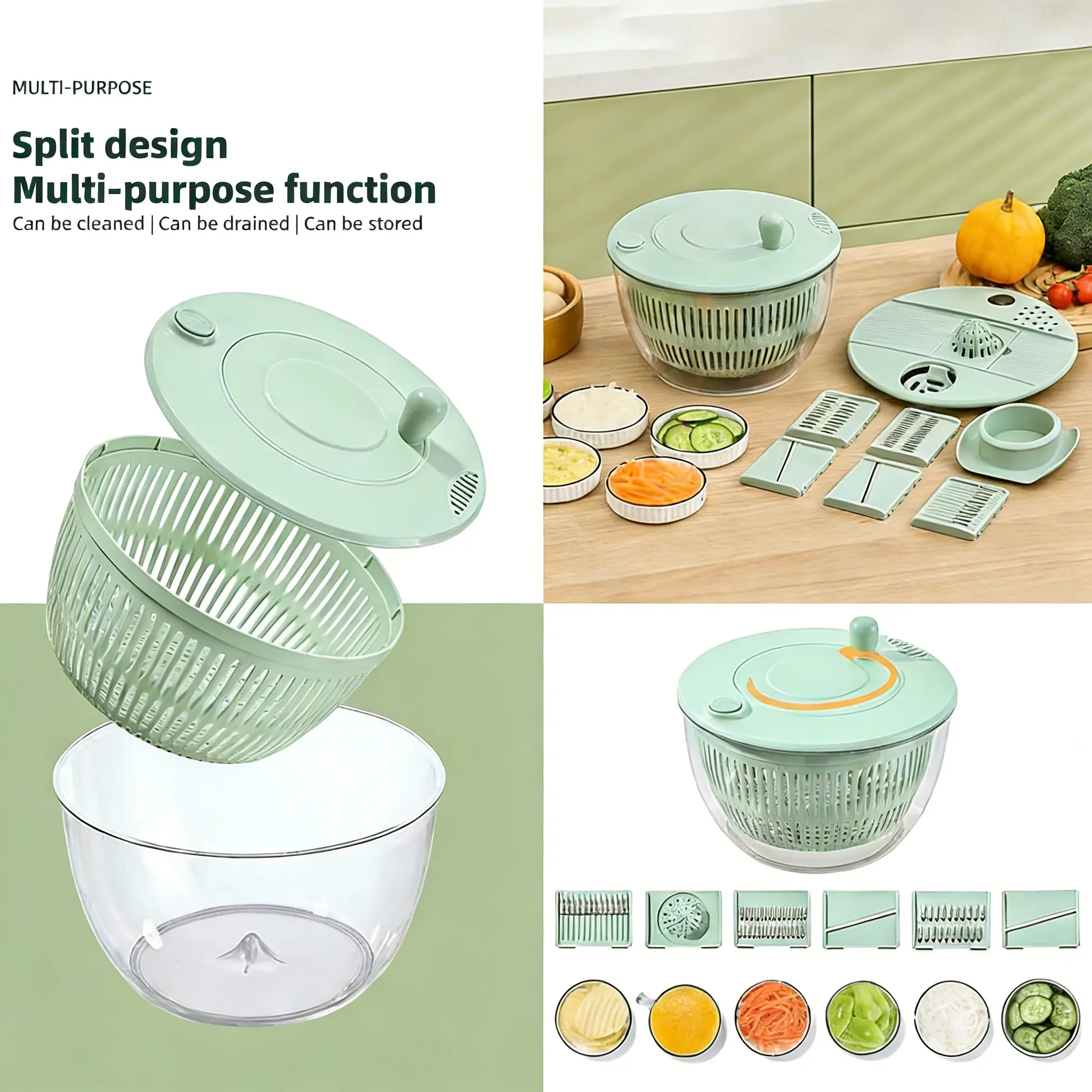 ·Upgrade Function: This fruit washer spinner bowl features a lid designed to separate egg yolks and a juicer for making juice. The lid of this salad bowl can be used to grate both garlic and ginger, and it comes with a slicer and julienne cutter.