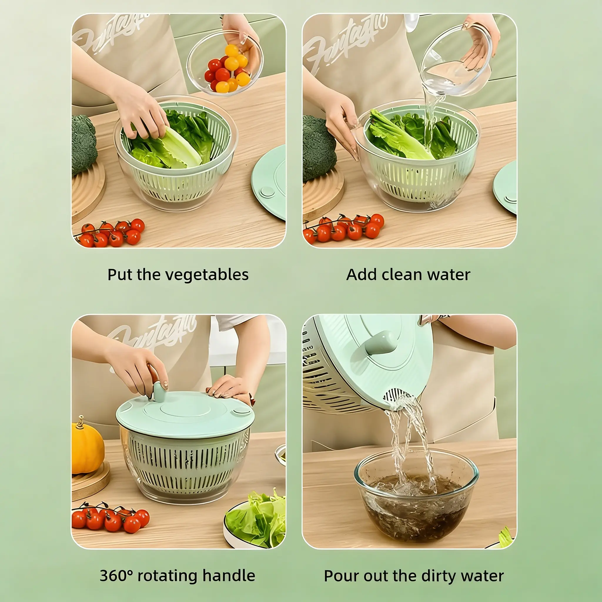 ·Convenient storage: This salad spinner is compact and all of the accessories can be incorporated into the bowl for easy storage and organization, the salad bowl suitable for family use, one-time to meet the needs of the 1-4 people.