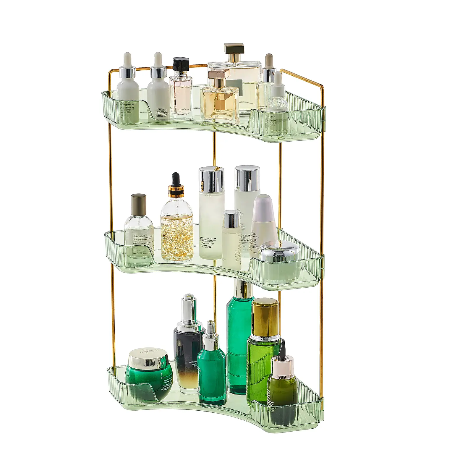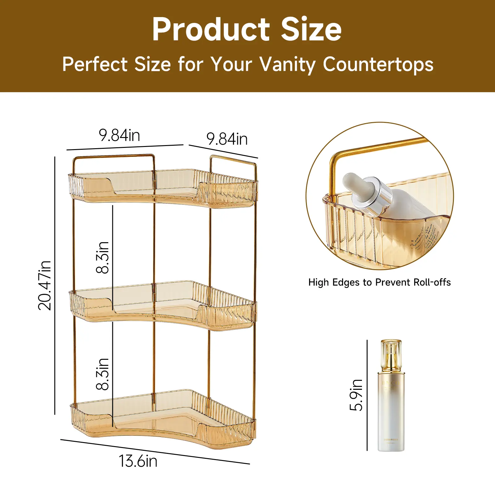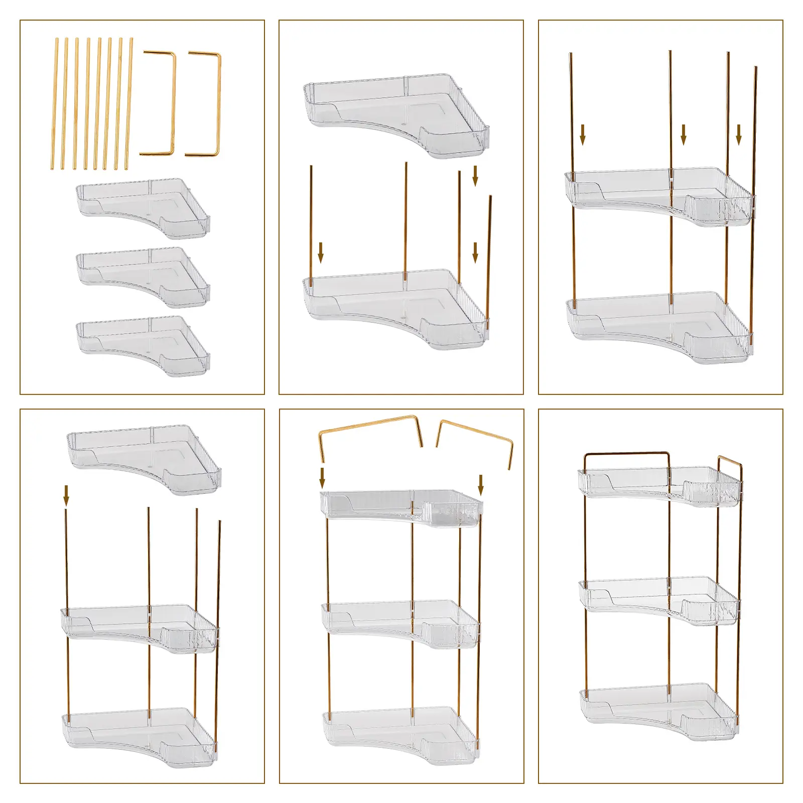 ·Elegant Appearance: Our bathroom counter organizer is contains transparent racks and supporting metal rods. The former adopts a clear and vertical pattern design, and the latter are painted in gold. This exquisite combination suits everywhere in your house.