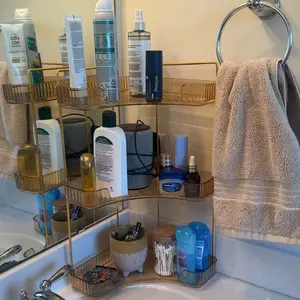 I love this! I have a very large bathroom, but it has almost no storage. This shelf is perfect for my counter! Itâs saves me so much room. I did attach a command Velcro dip to the back so it could attach to the wall because itâs a little top-heavy, and as you can see, I didnât want it to tip over.