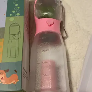 Es un bote excelente, trae un contenedor pequeño para que le pongas alimento en la parte baja, trae un un espacio para que pongas Bolsas para que levante sus eses, es un magnífico producto, te ayudará mucho a darle de tomar agua a tu perrito, también te dan tres Paquetes de bolsitas, Es fabuloso