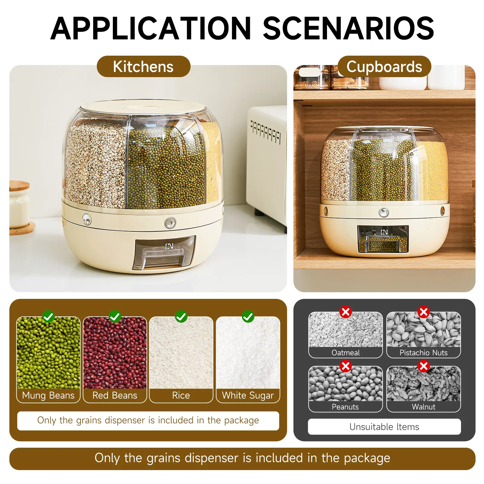 【MULTI-COMPARTMENT DESIGN】Separate compartments for organized storage of different grains, rice, or dry goods, with a clear view dome lid for easy content identification.