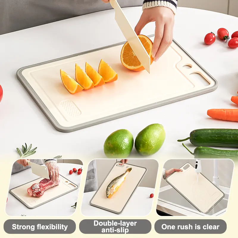 Made of high-quality materials, it's stain-resistant and easy to clean. The smooth surface can be quickly rinsed, and it's dishwasher-safe for convenience. You'll enjoy a long-lasting cutting board that's easy to maintain.