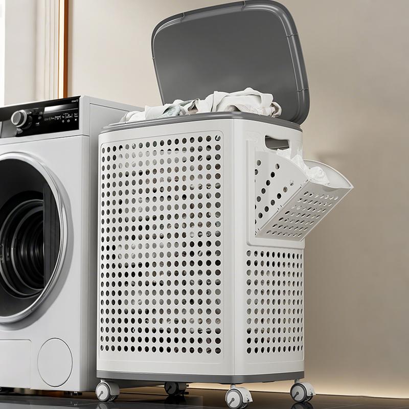 Features a hollow structure that promotes constant air circulation, keeping stored clothes dry and odor-free. The attached lid effectively prevents dust and splashes while offering a sit-proof top for added functionality and hygiene.
