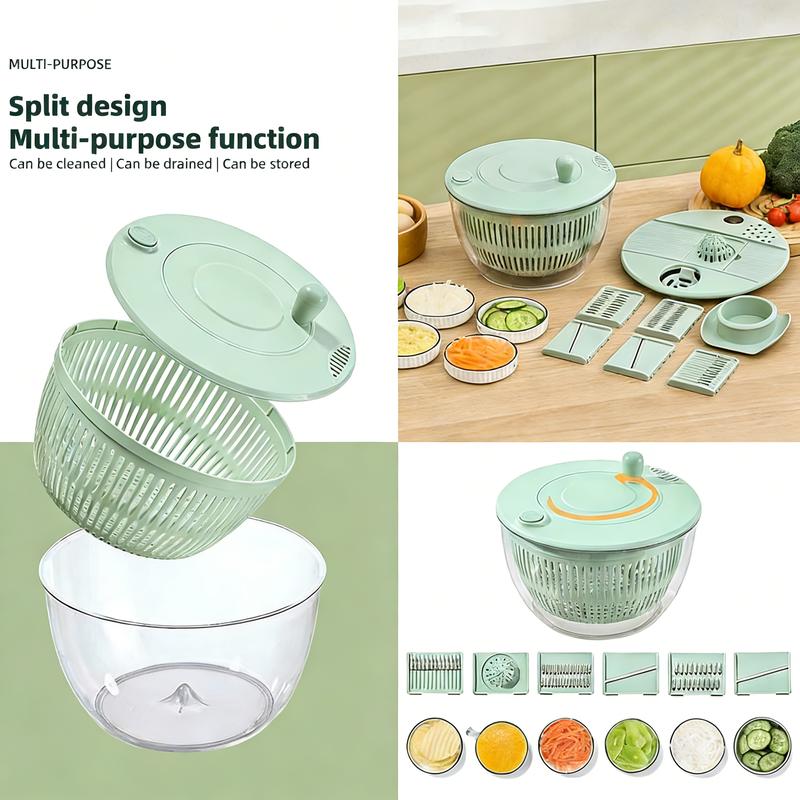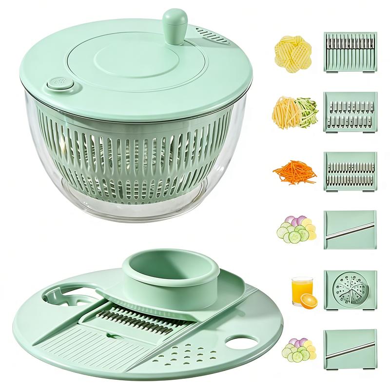 ·Multi-Purpose Kitchen aid accessories: This multifunctional salad mixer set includes a bowl with a lid ring, a lettuce spinner disc, protective finger guard, a basket, two slicing blades, three julienne blades, and mixing tongs for easy meal preparation.