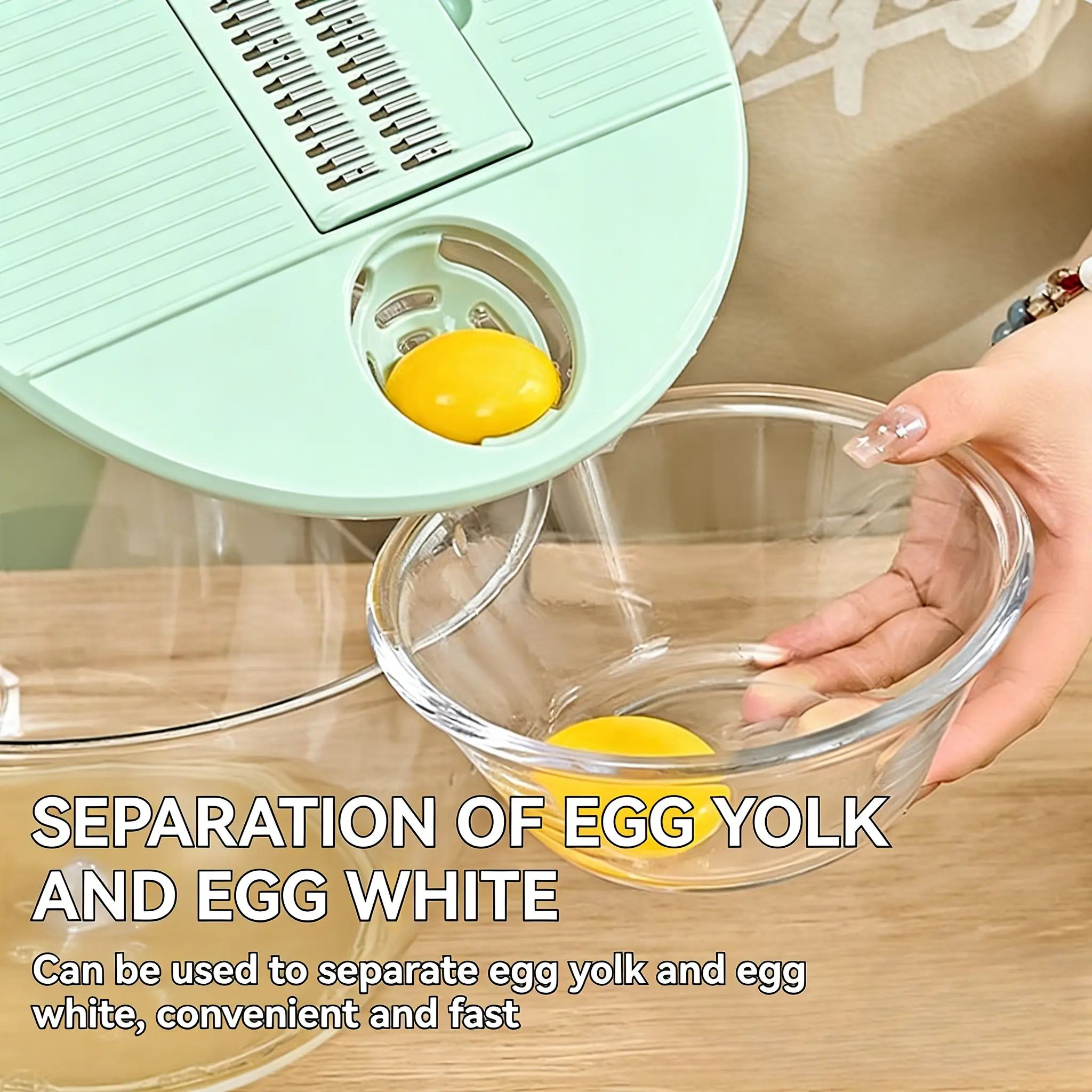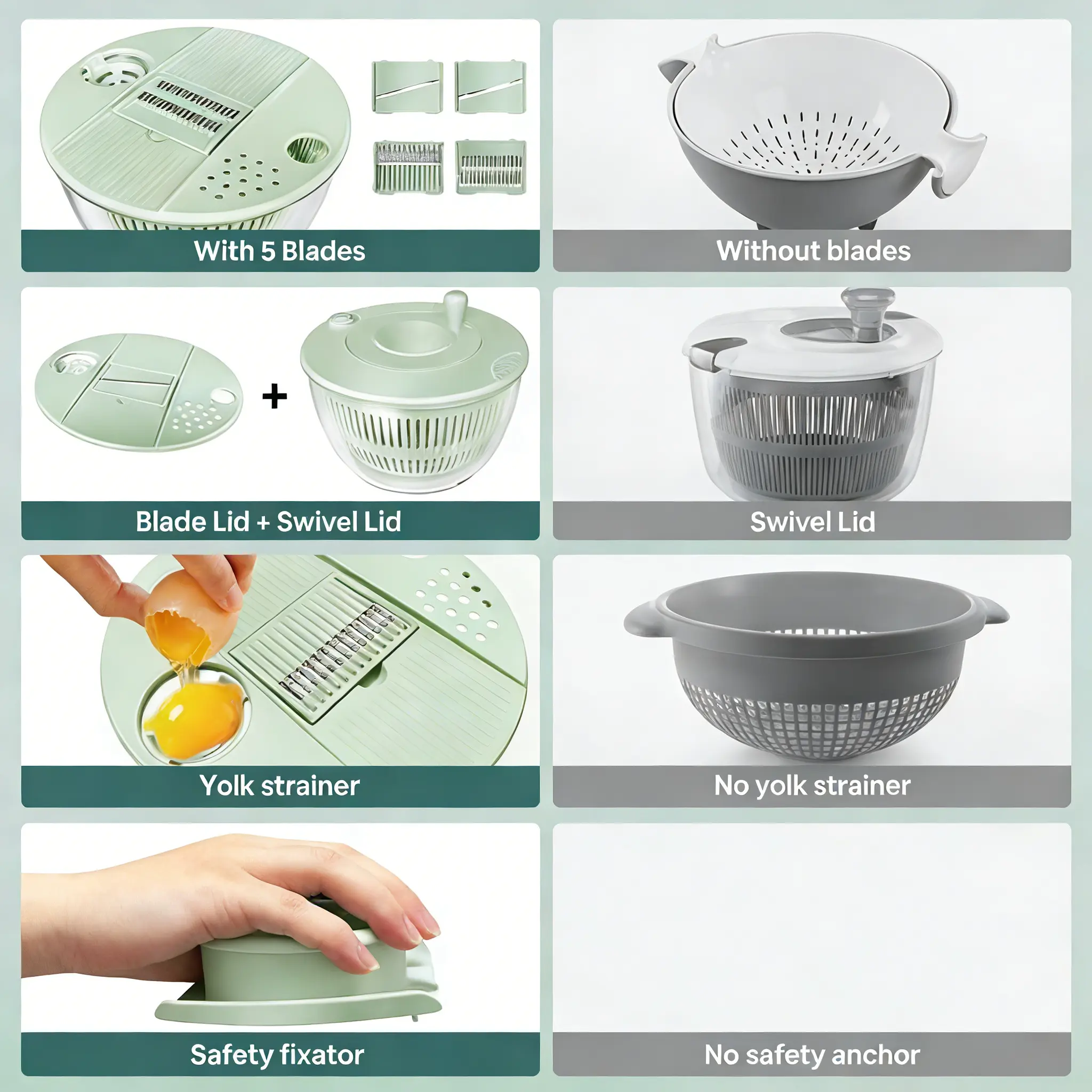 ·Upgrade Function: This fruit washer spinner bowl features a lid designed to separate egg yolks and a juicer for making juice. The lid of this salad bowl can be used to grate both garlic and ginger, and it comes with a slicer and julienne cutter.