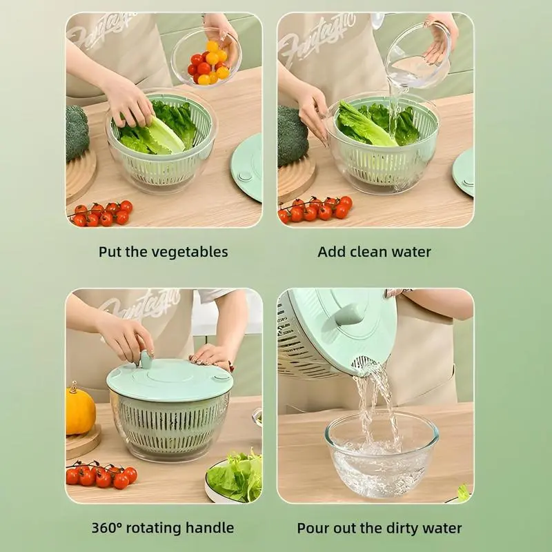Convenient storage: This salad spinner is compact and all of the accessories can be incorporated into the bowl for easy storage and organization, the salad bowl suitable for family use, one-time to meet the needs of the 1-4 people.