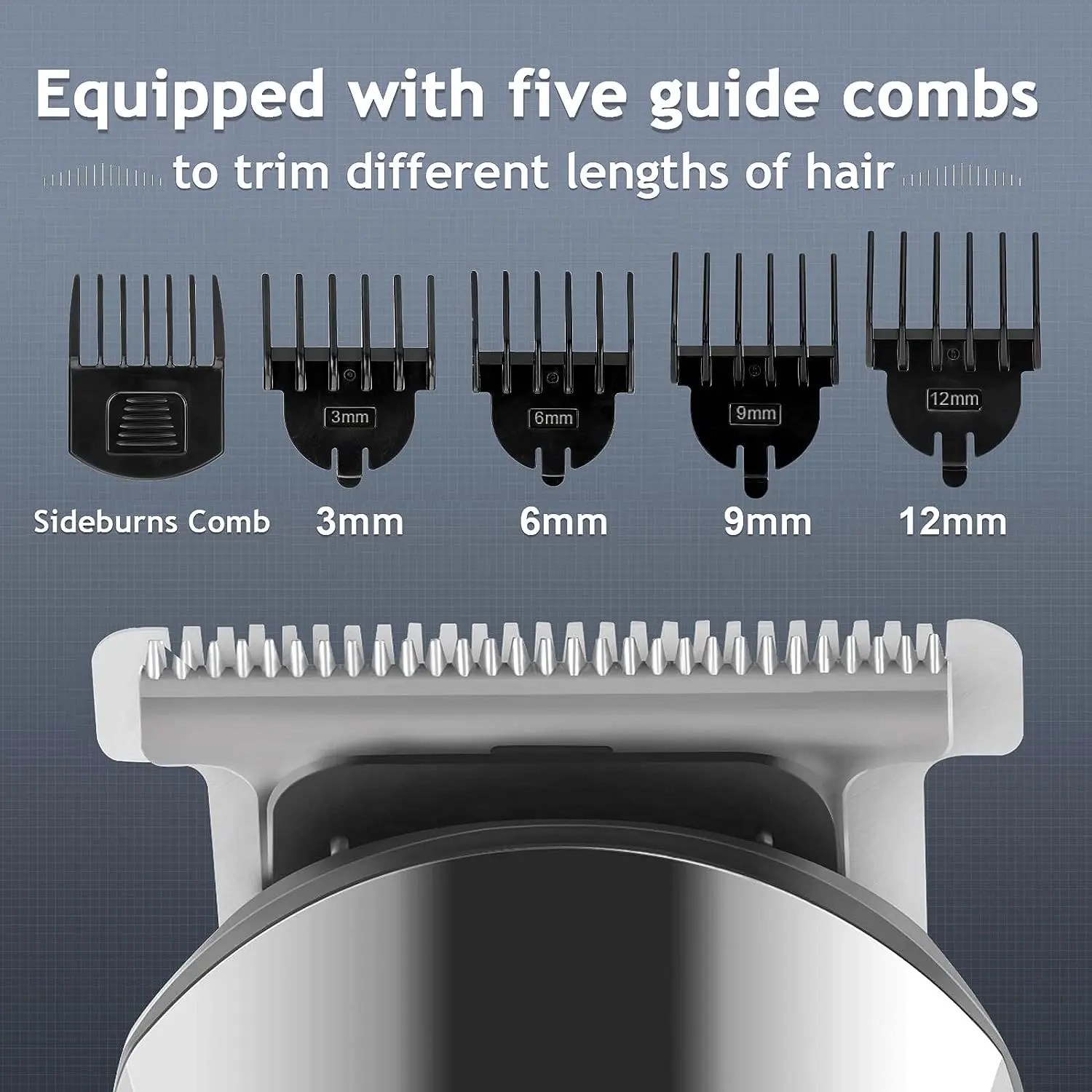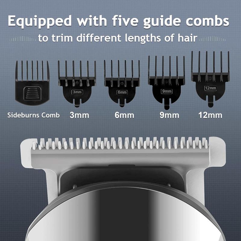 ·MULTIFUNCTIONAL HEADS: Equipped with 6 trimming heads, you can use it to trim your beard, hair, nose hair, body, face, and even intimate areas. It also comes with 4 guide combs (3, 6, 9, 12 mm) and 1 adjustable sideburn comb to trim any gradient you want.