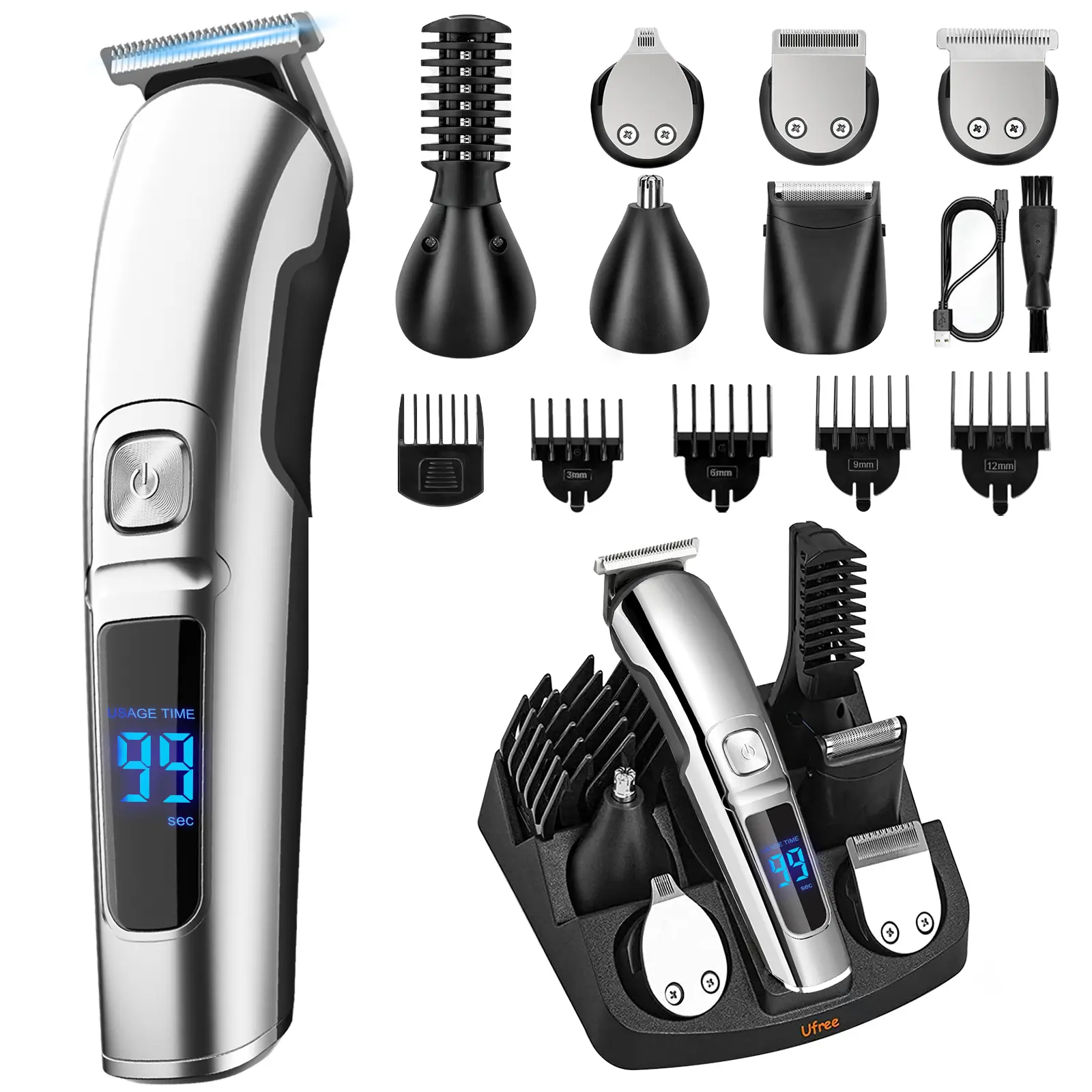Ufree All in One Grooming Kit - This is the ultimate trimmer for all your daily grooming needs. Designed with different heads for different trimming areas, this grooming trimmer is the perfect solution for comfortable trimming with safe heads that prevent scratches and cuts.