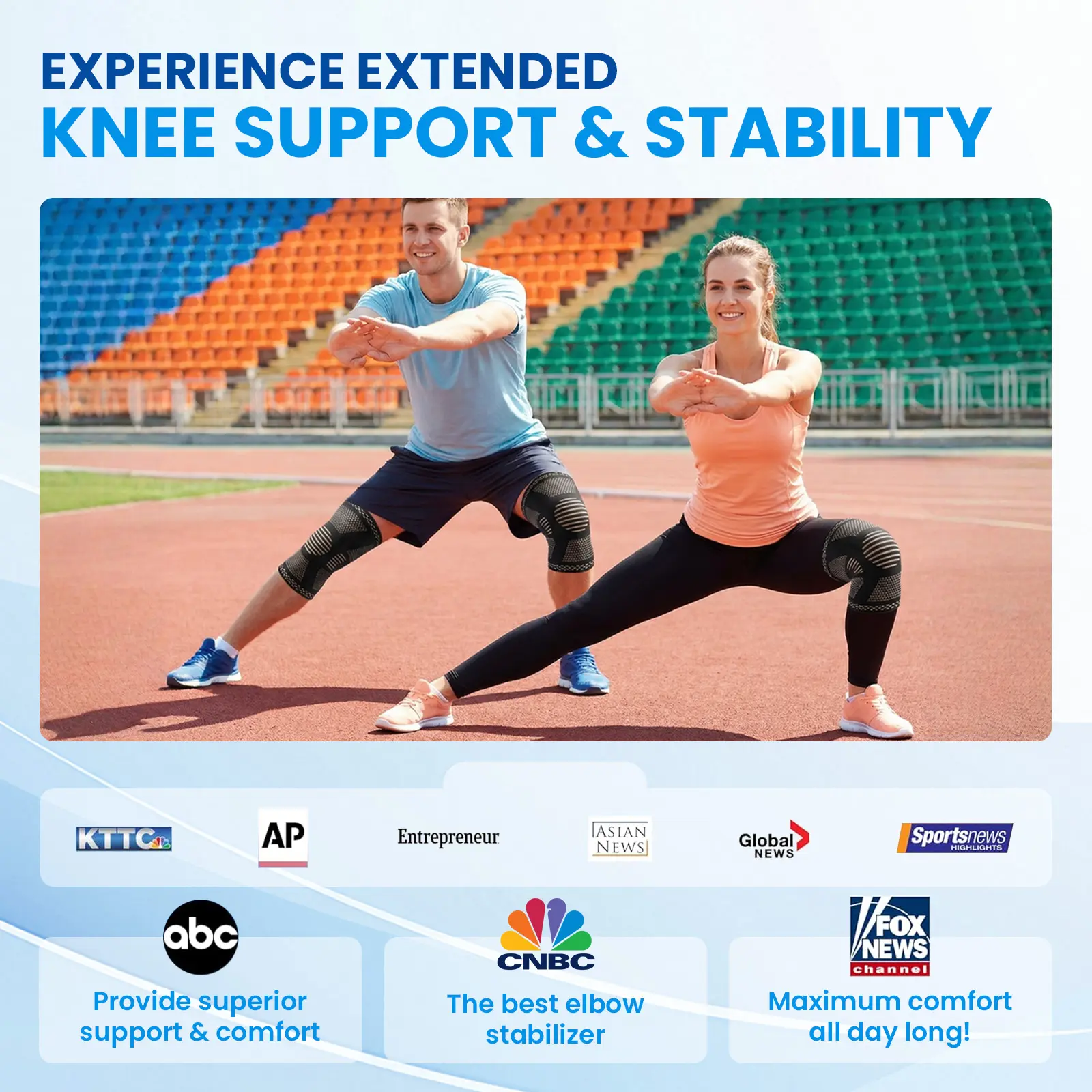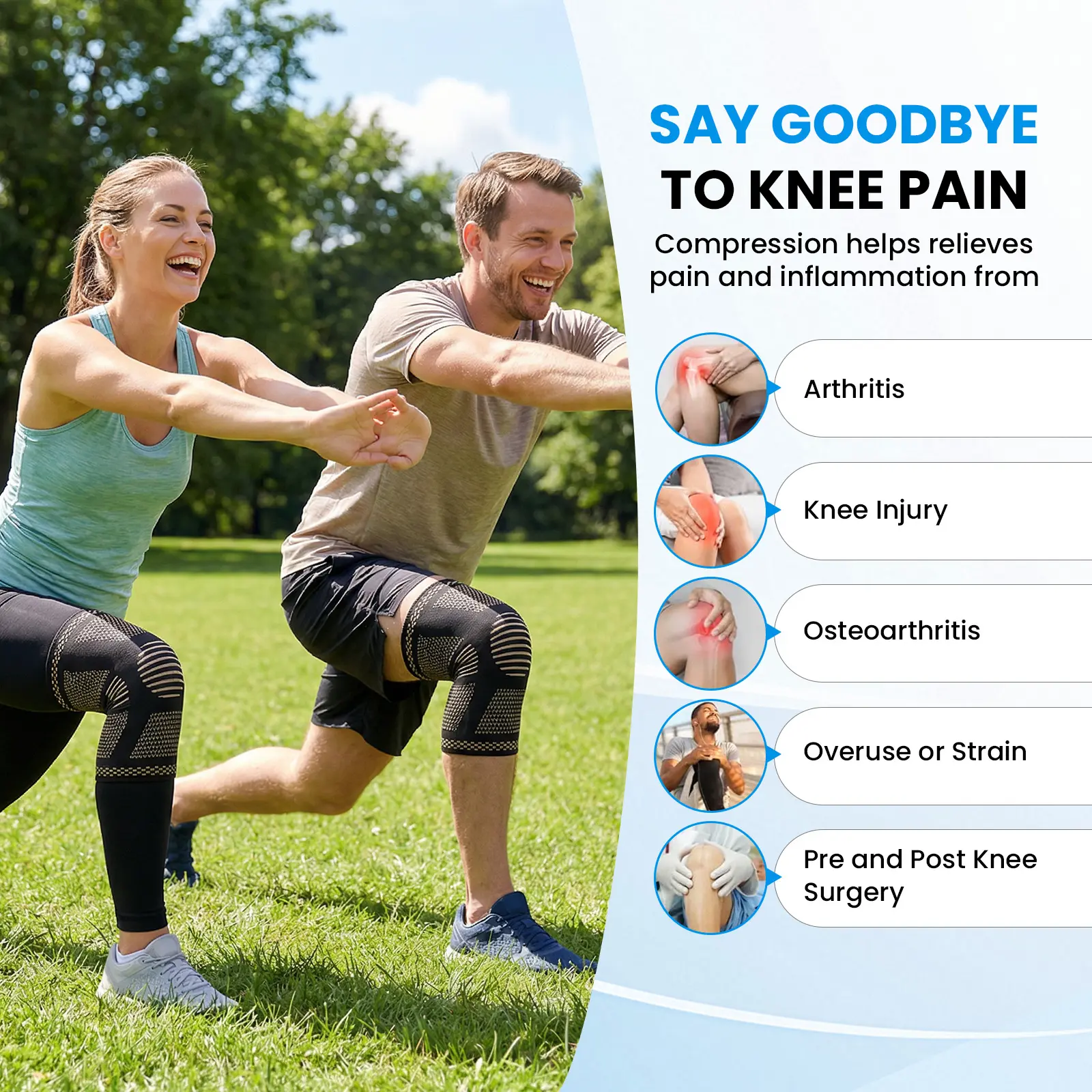 ·Breathable Knit Fabric: Keeps knees cool and dry.
