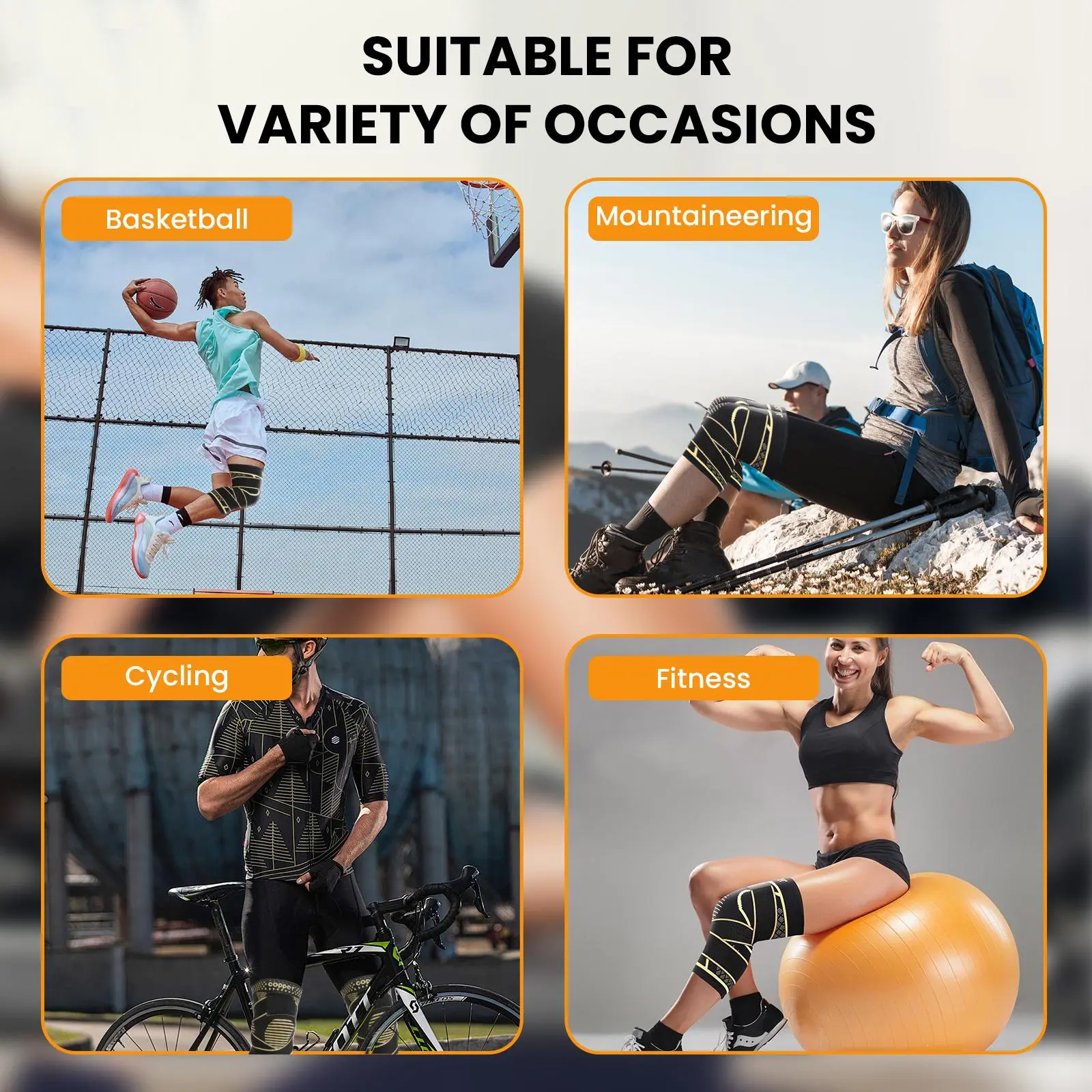 ·Anti-Slip Design: Special knitting technology with two straps ensures the knee pads stay in place during wear and sports.