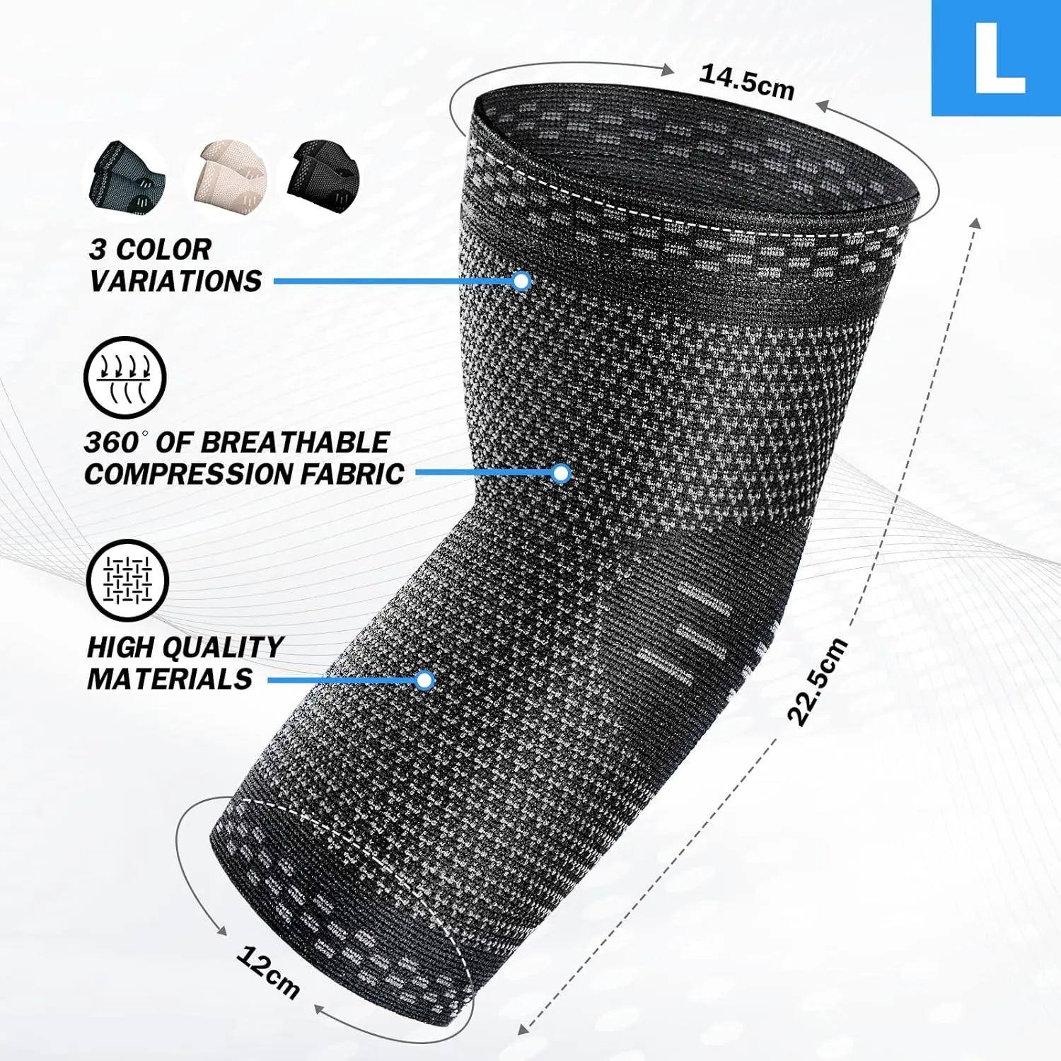 ·Size Adjustment: Measure your elbow circumference for the correct size. Suits average compression pressure, expands up to 60% more than the original diameter.