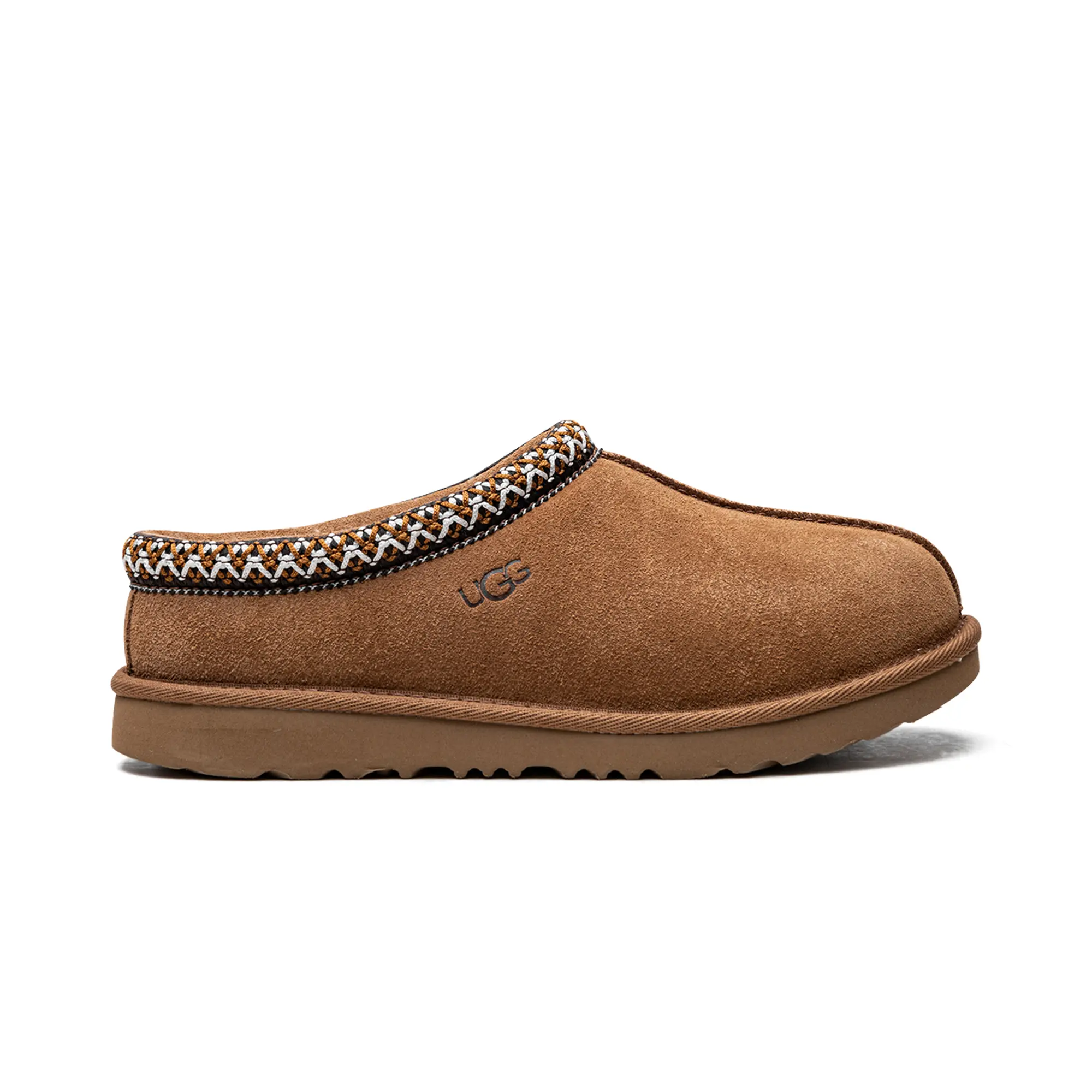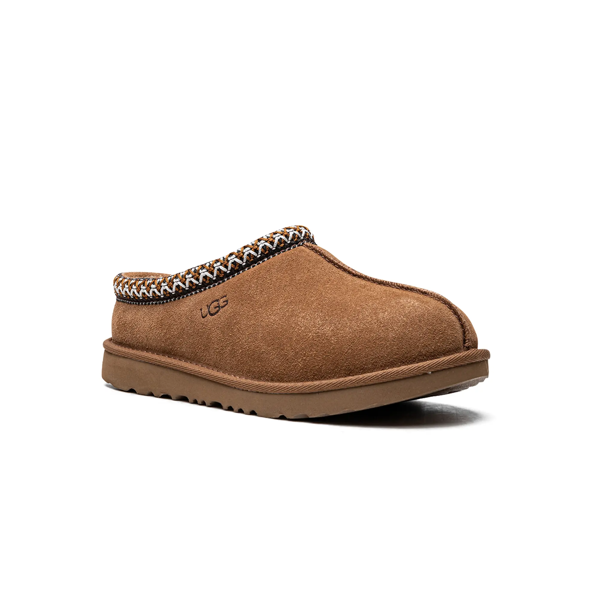 Treat your Grade Schooler to the slipper that's always in style: the cozy UGG Tasman II GS "Chestnut". These slip-ons are built for comfort, featuring a warm, soft UGGplush™ upcycled wool lining and a durable suede upper. The signature embroidered Tasman braid instantly elevates the look. With a lightweight yet tough outsole, your kid can wear these versatile essentials from inside the house to playground adventures. They'll love this timeless shoe!
