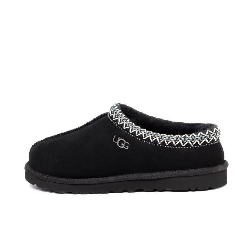 The UGG Tasman Slipper Black combines iconic UGG comfort with timeless style. Crafted from premium black suede, this slipper features a cozy UGGpure™ wool lining that provides plush warmth and softness. The signature Tasman braid detailing along the collar adds a touch of texture and style, making it effortlessly versatile for indoor and light outdoor wear.