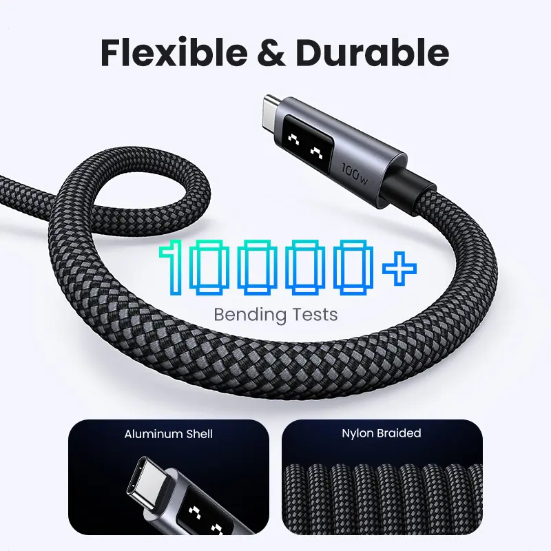 Ever get tired of slow charging or guessing if your device is actually charging? Meet the UGREEN Uno 100W Type-C Fast Charging Cable—your new power buddy. This cable powers up your iPhone 17, MacBook Pro, Galaxy S24 Ultra, and more at lightning-fast speeds thanks to its PD 100W support. Plus, the smart LED smiley face lets you check your charging status at a glance—charging just got a fun upgrade! Crafted with a durable nylon braided exterior and a sturdy aluminum shell, this cable resists tangles and daily wear, perfect for on-the-go lifestyles. It also supports speedy data transfers up to 480 Mbps, so moving files is a breeze. Inside the box, you get one 3.3-foot cable designed for universal compatibility with the latest USB-C devices. Whether you’re powering up for work or play, this cable keeps you connected and charged efficiently. Ready to ditch slow charging? Grab your UGREEN Uno cable today and enjoy fast, reliable power with a smile!
