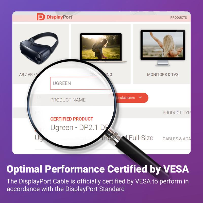 UGREEN 16K DisplayPort Cable 2.1 [VESA Certified] DP2.1 40Gbps Support 8K@240Hz 4K@240Hz HDR, HDCP, DSC 1.2a, Braided Display Port Cable Cord Compatible FreeSync G-Sync Video Card Monitor, 6.6FT