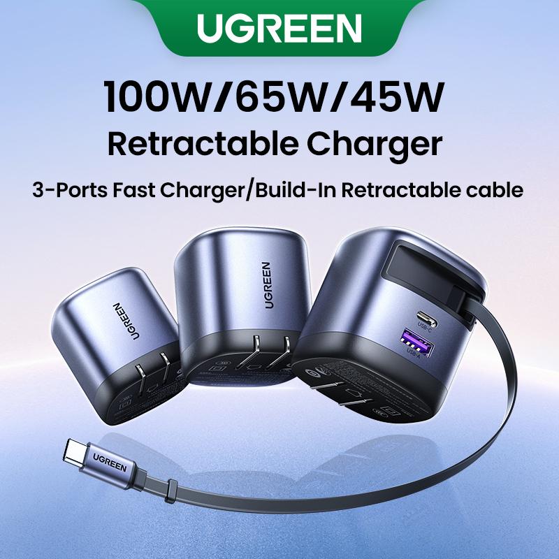 ·With Built-in Cable, Yet Smaller: This UGREEN 45W USB-C 3-Port charger has a Type-C retractable charging cable. Its size is about 30% smaller than original 45W chargers, making it easy to slip into pockets or bags, perfect for business trips and vacations.