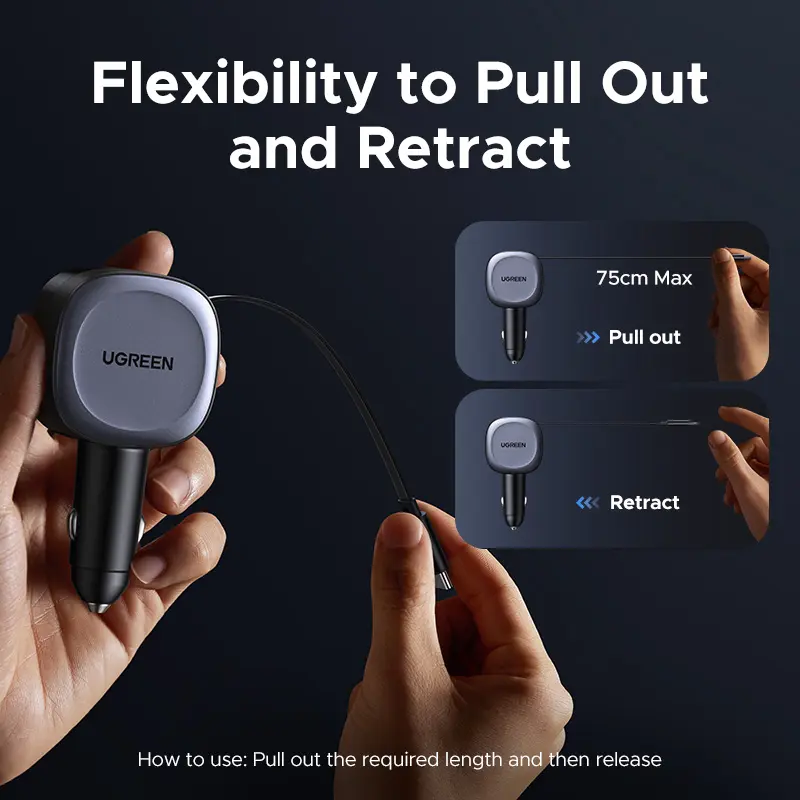 love the retractable part of this charger. makes it really convenient and keeps my car clean