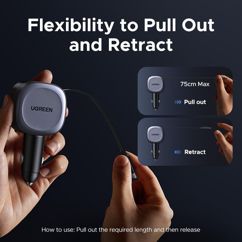 Retractable Car Charger @UGREEN.US  #retractablecarcharger #phonecharger #iphonecharger #cargadgets #tiktokshopfalldealsforyou