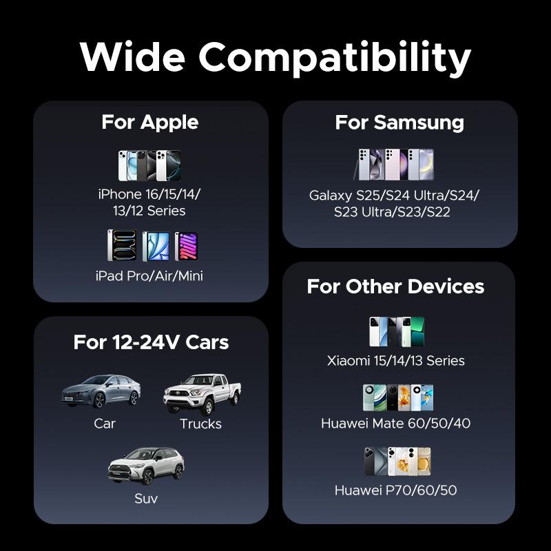 Charge everything faster on the go with the UGREEN 90W Retractable Car Charger 🚗🔋 — power up your laptop, tablet, and phone all at once! Features dual USB-C ports, PD fast charging, and a retractable cable for a clean, tangle-free setup. 🙌 Perfect for road trips, rideshares, and daily commutes — sleek design, powerful performance, and built to last. 💪✨ #UGREENCharger #90WFastCharger #RetractableCarCharger #CarEssentials #FastCharging