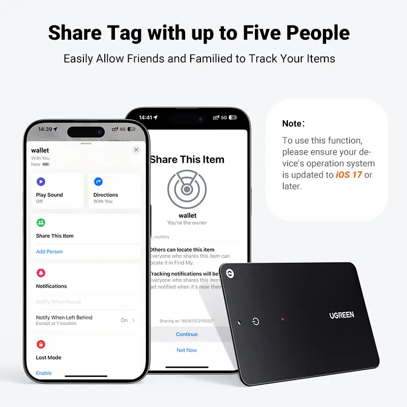 ·Multi-Phone Information Sharing: Bluetooth tracker supports sharing items information to 5 iPhone, and 1 iPhone supports up to 32 smart tag connections. You no longer need to worry about family and friends can't find the items.