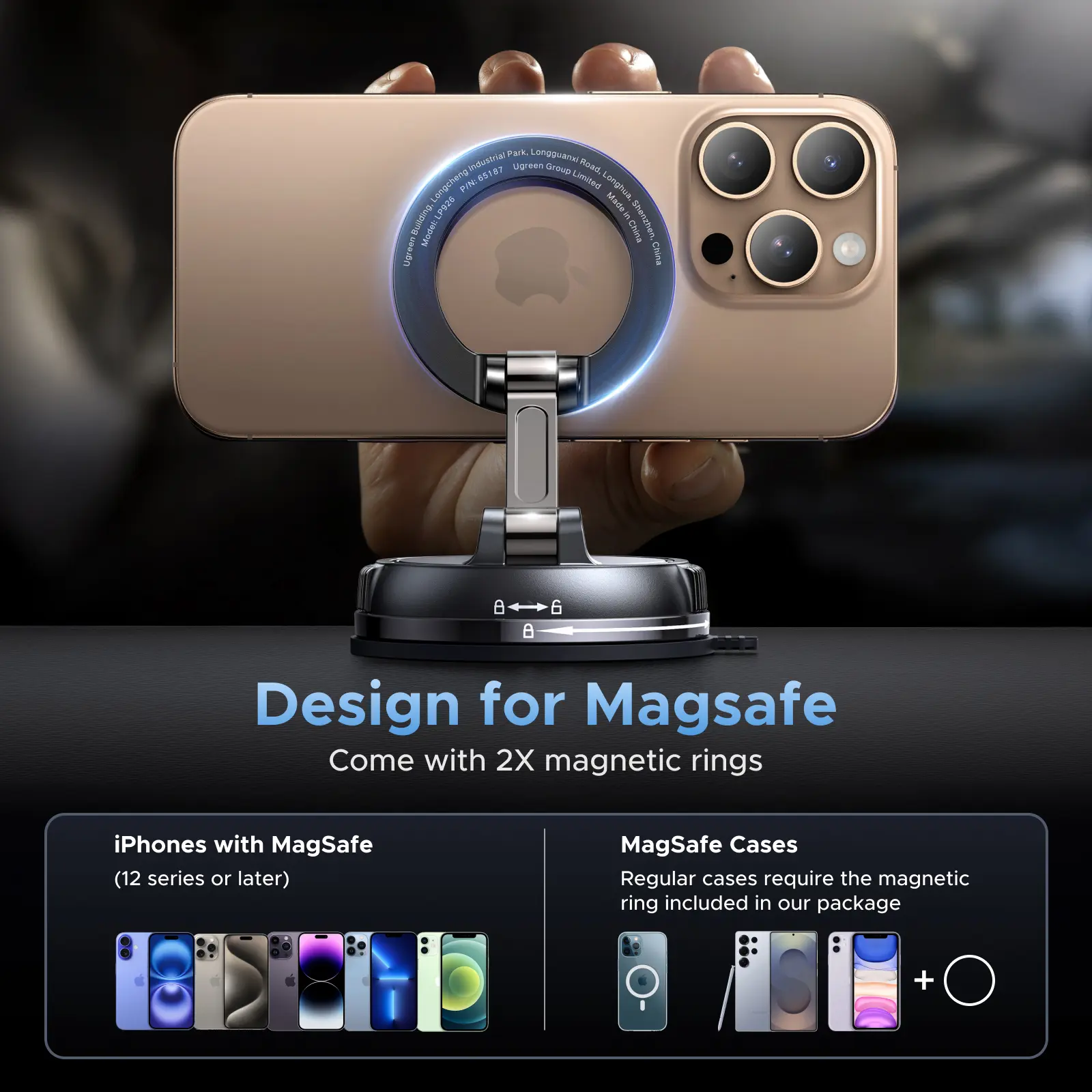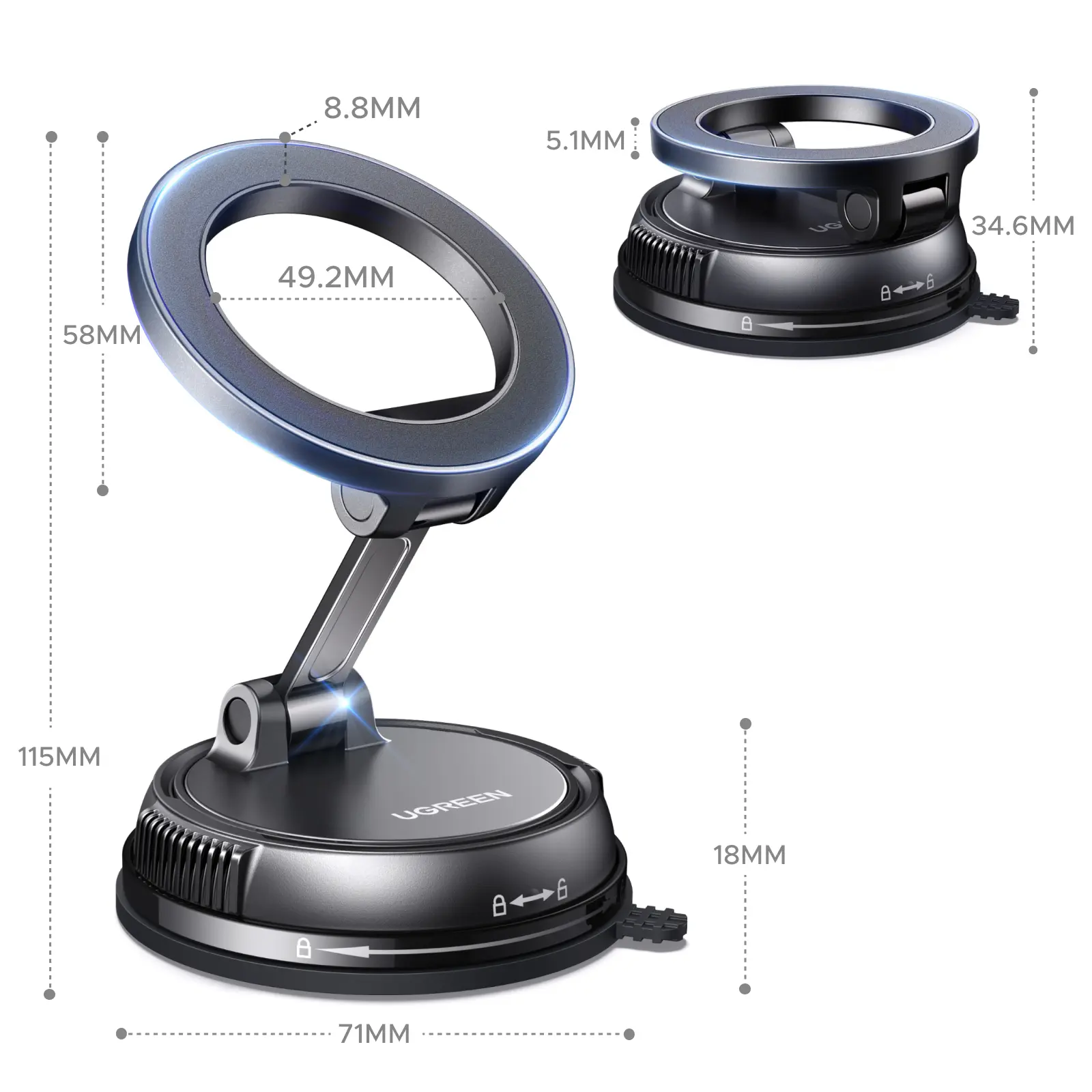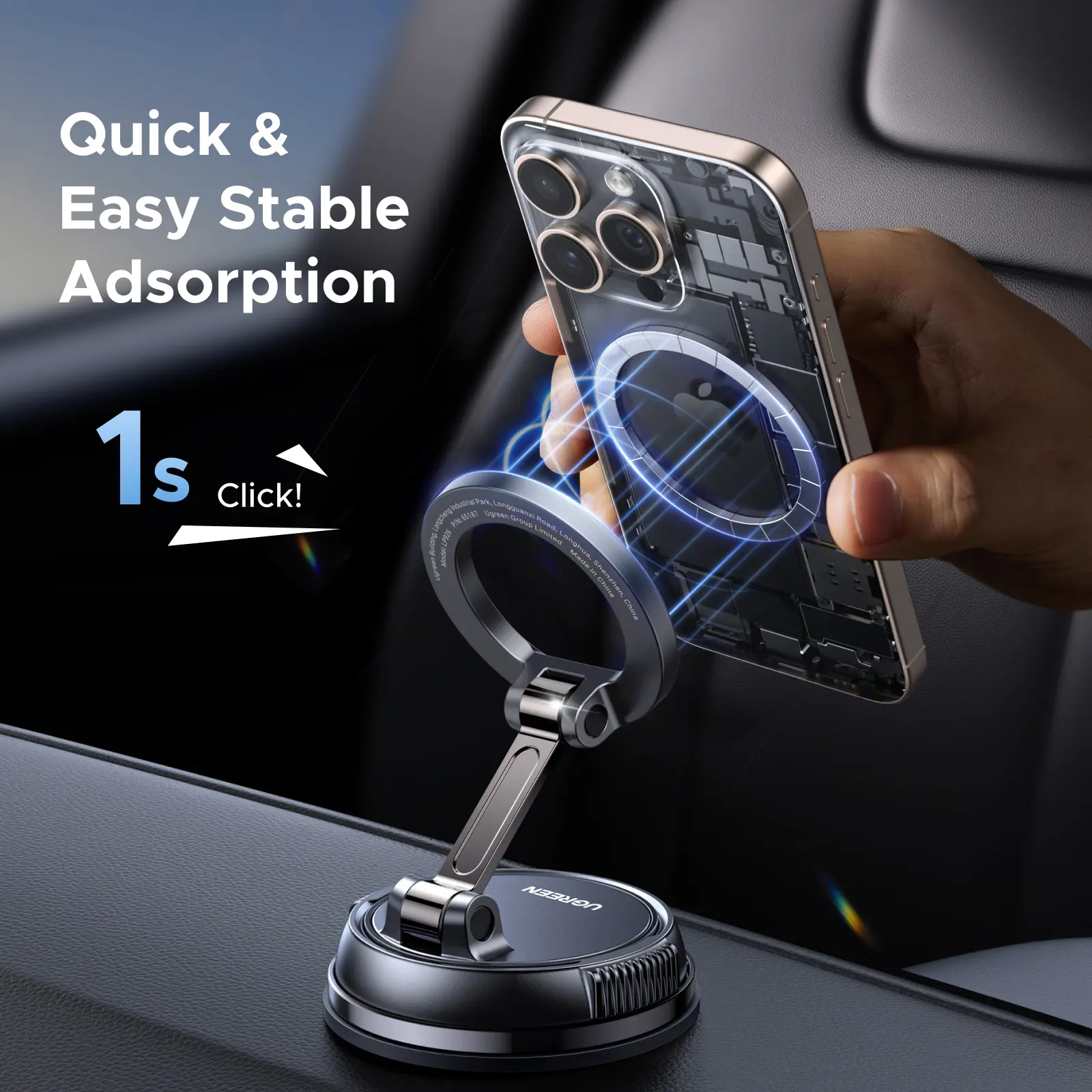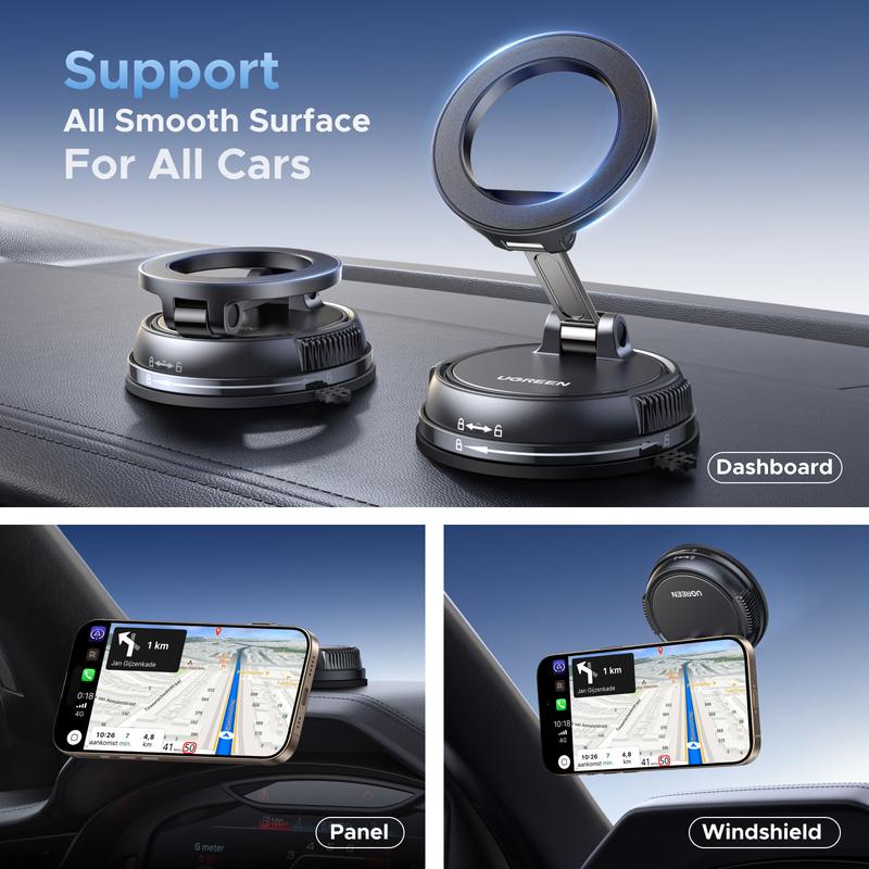 UGREEN’s magnetic holder grips surfaces like mirrors and dashboards with military-grade suction. Rotate 360 to find your perfect viewing angle whether navigating Waze or streaming podcasts.