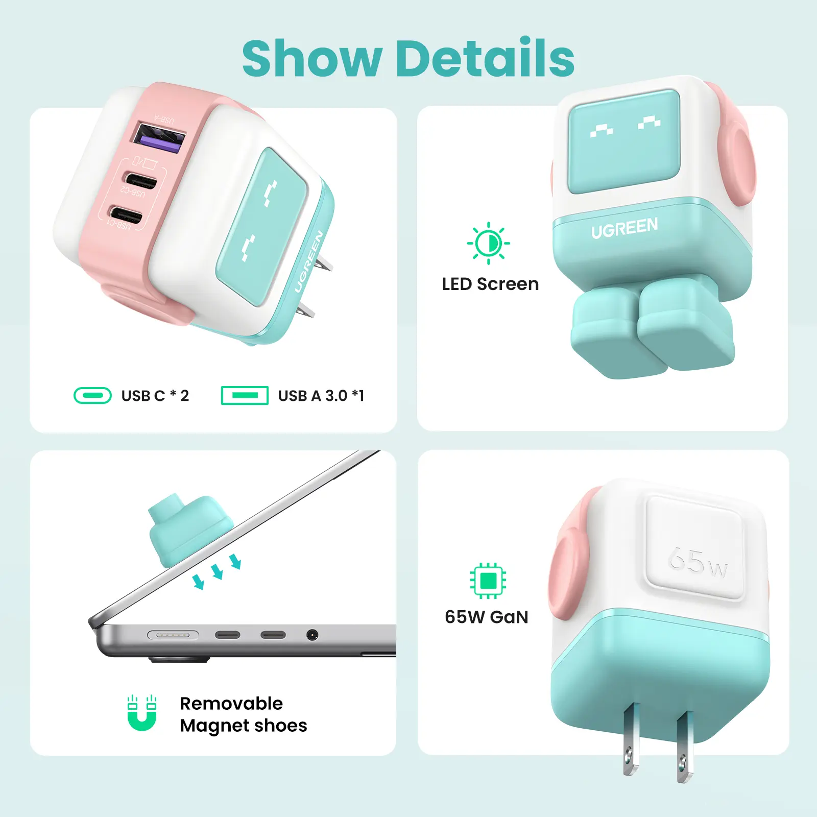 【LIVE ONLY】UGREEN Uno 100W/65W/30W/USB C Charger 3/4-Port Robot GaN Fast Charger PPS PD3.0 for iPhone 17 16 15 14 Pro Max, Galaxy S24/S23 Ultra, Fast Charge for Laptop Macbook Air-Black Friday Electronic Charging,TikTokShopHolidayHaul