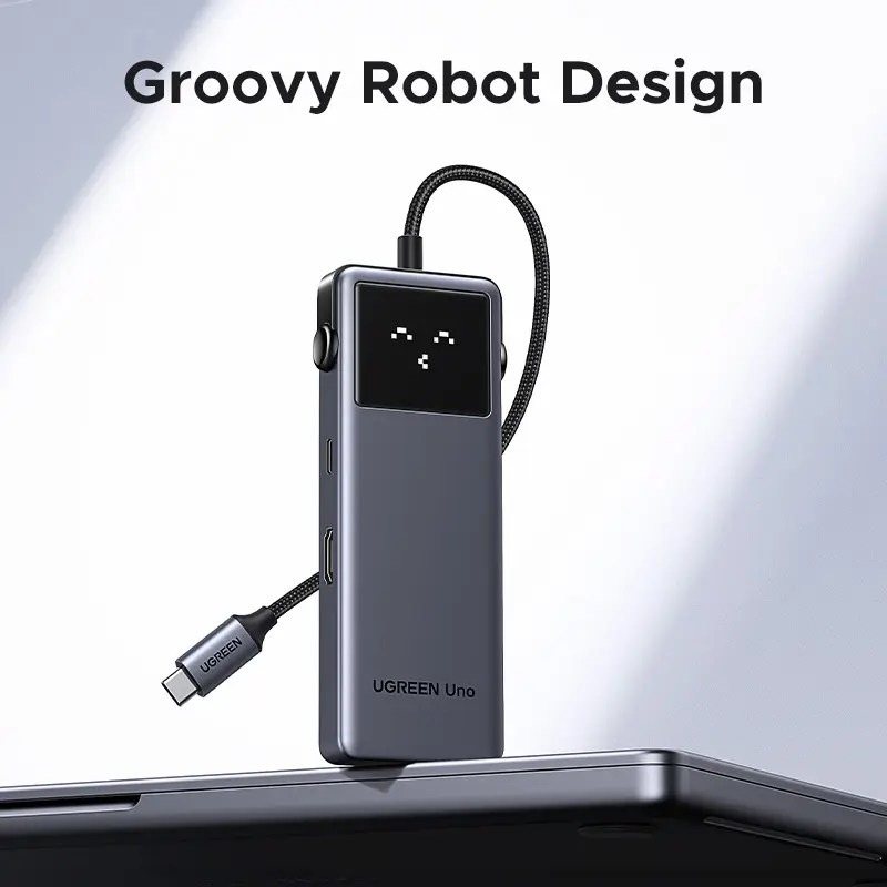 ·Groovy Robot Design: 6-in-1 Uno usb c hub features four smart status emojis. Unleash more potential from your laptop's USB-C port with two 10 Gbps USB-C 3.2 Gen 2 ports, two 10 Gbps USB-A 3.2 Gen 2 ports, 4K@60Hz HDMI, PD100W.