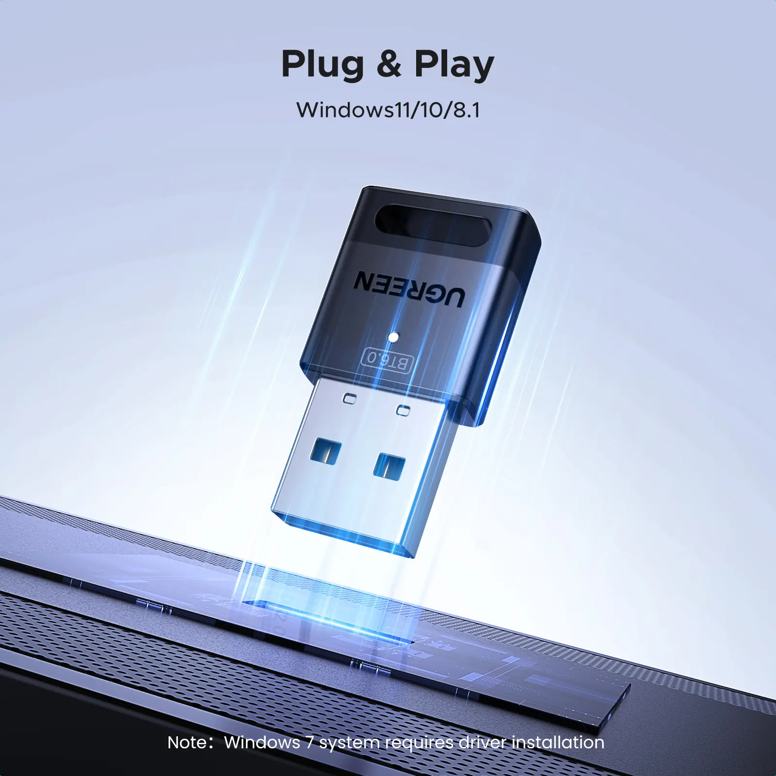 UGREEN USB Bluetooth Adapter for PC - Bluetooth 6.0 Dongle Receiver, Plug and Play, Supports Windows 11/10/8.1/7 for Desktop, Laptop, Keyboard, Mouse, etc,2Pcs