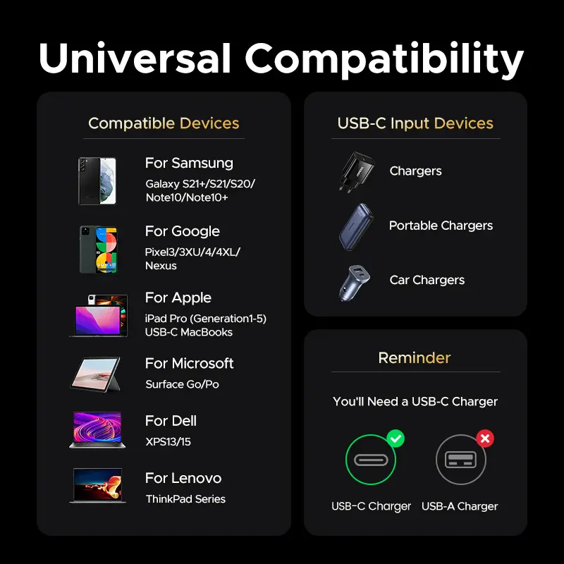 Crazy fast charging a bit on the bulky side but getting a few full charges is a game changer. Performance: 165w charger allows for 2 phones to be charged quickly and faster than a normal car charger or standard wall charger. Quality of work: The built-in cable is just a beautifully produced 👌 👏.