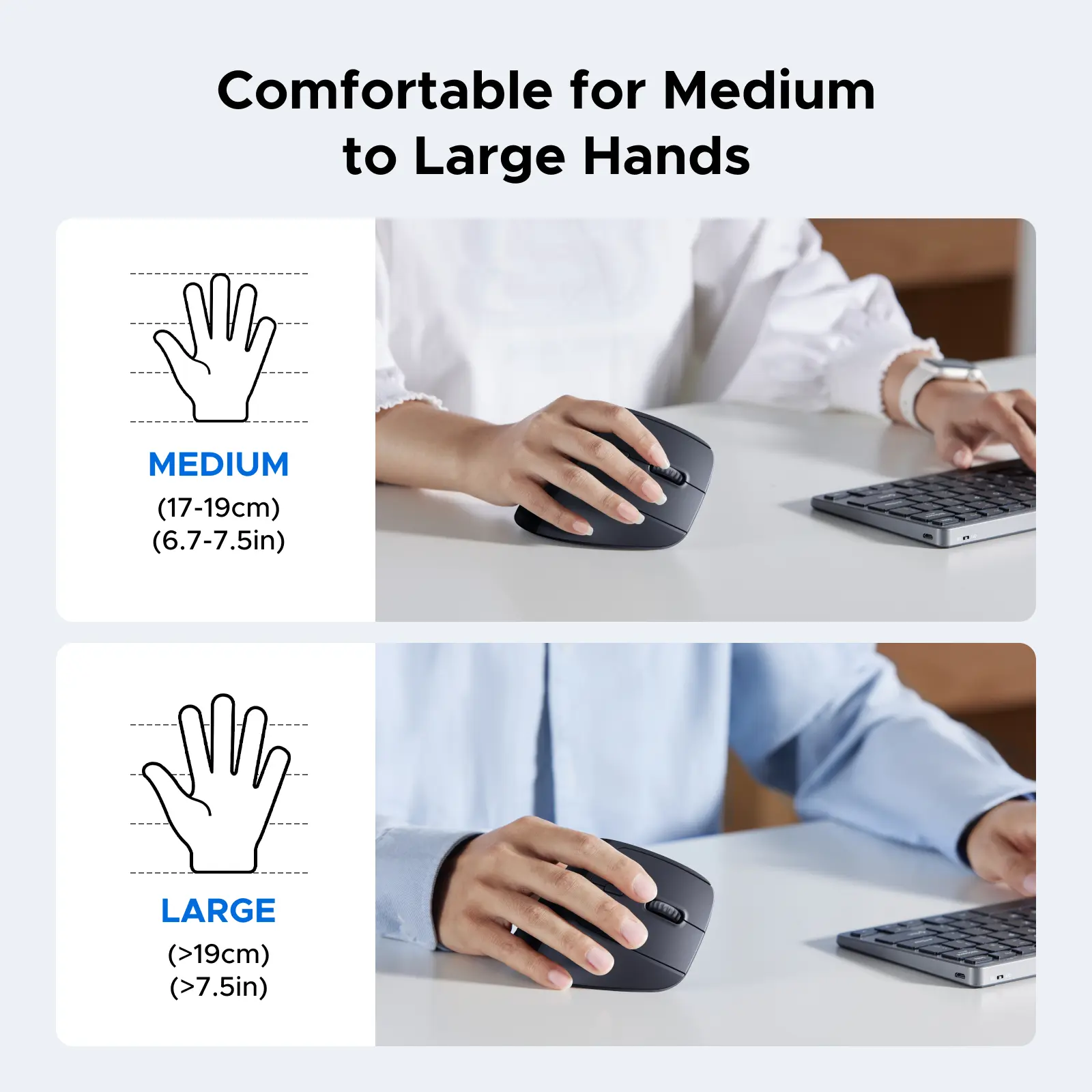 Great vertical mouse! Very comfortable and easy on the wrist. The ergonomic grip feels natural, and the tracking is smooth with no lag. Took a day to get used to, but now it’s my go-to mouse. Highly recommend for anyone who works at a computer all day.