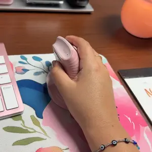 I have to say, my wrist feels immediately better with this mouse. It’s very quiet, a calming tone of pink, and it’s very smooth. It connected seamlessly. It requires one AA battery that it does not come with (which is fine considering the affordability). Might gift these for Christmas actually!!